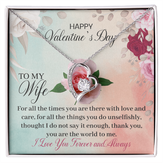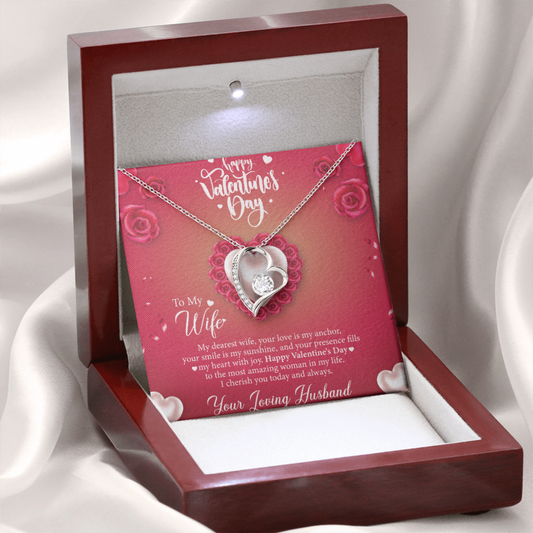 Valentine Gift For Wife, Heart Pendant Necklace, To My Wife I Love You Forever Message Card, Valentine's Gift for Wife From Husband