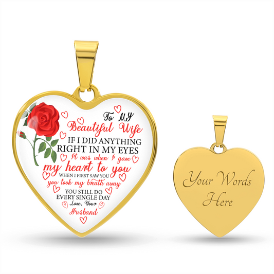 Heart Pendant Necklace, To My Wife, Valentines Day Gift For Wife with Heartfelt Message Card
