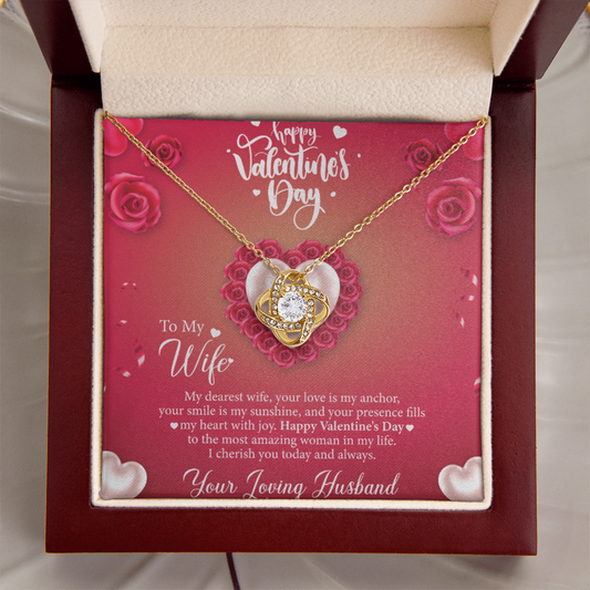 Valentine Gift for Wife, Gift for Wife for Valentines, Valentine's Day Gift for Wife, Love Knot Necklace with To My Wife Message Card from Husband