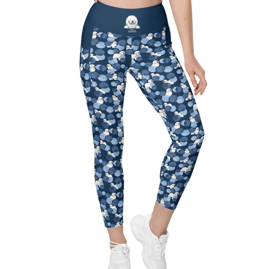 Old English Sheepdog Leggings with pockets, Leggings with Old English Sheepdog Denim Blue Bubble Pattern