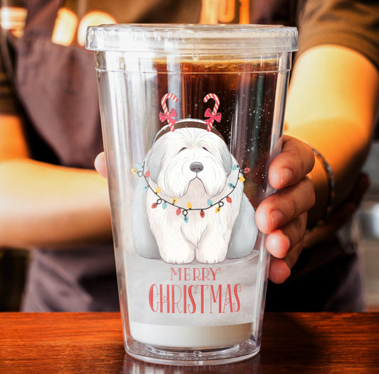 Insulated Tumbler, Old English Sheepdog Christmas Tumbler, with Lid and Straw, Scrooge