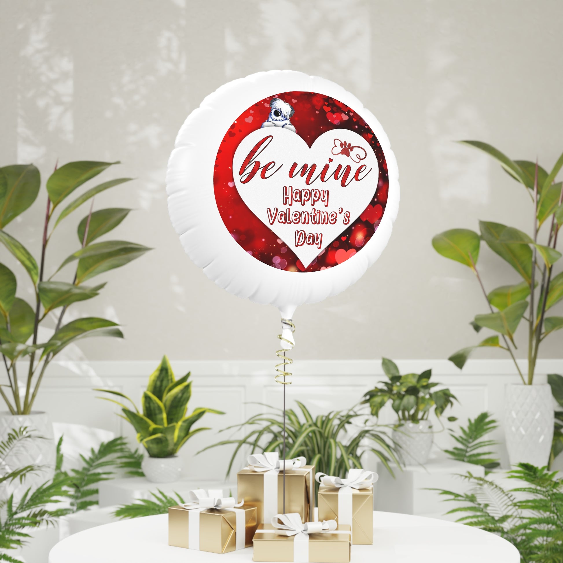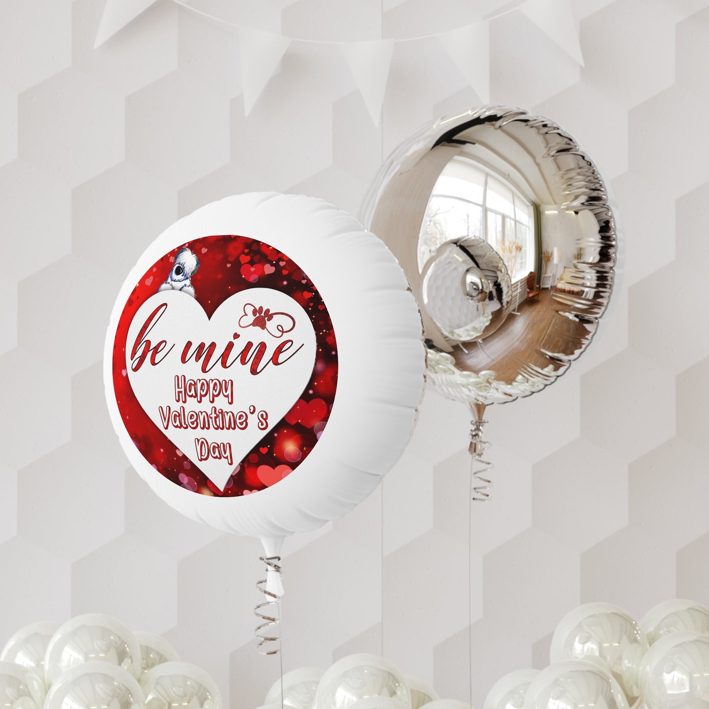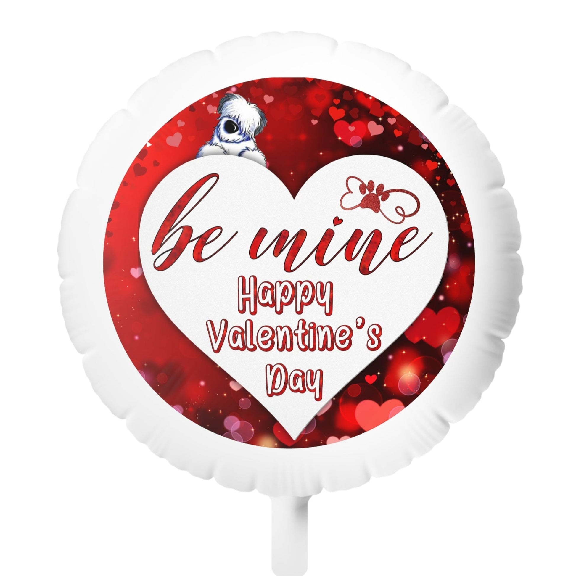 Be Mine, Happy Valentine's Day Balloon. This is a 22" Mylar Helium Balloon with an Old English Sheepdog on the top of the heart, who wants to lick/kiss you all over. Make this Valentine a unique and fun day with this colorful Floato™ balloon. The design is a high quality print and displays beautifully on the white Mylar surface with silver Mylar on the back. These balloons take the podium for practicality. They're reusable and waterproof—perfect for indoor and outdoor events.