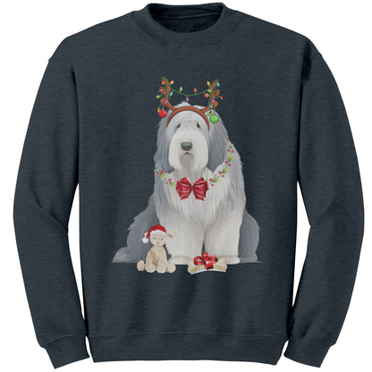 Christmas Sweatshirt, Old English Sheepdog, Not the Antlers, Unisex, Gildan Cotton/Polyester Sweatshirt