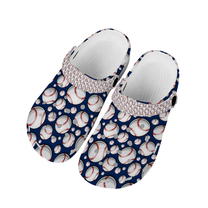 Clogs Navy Blue Baseball, Navy Blue Baseball Slide On's