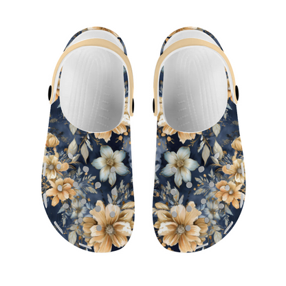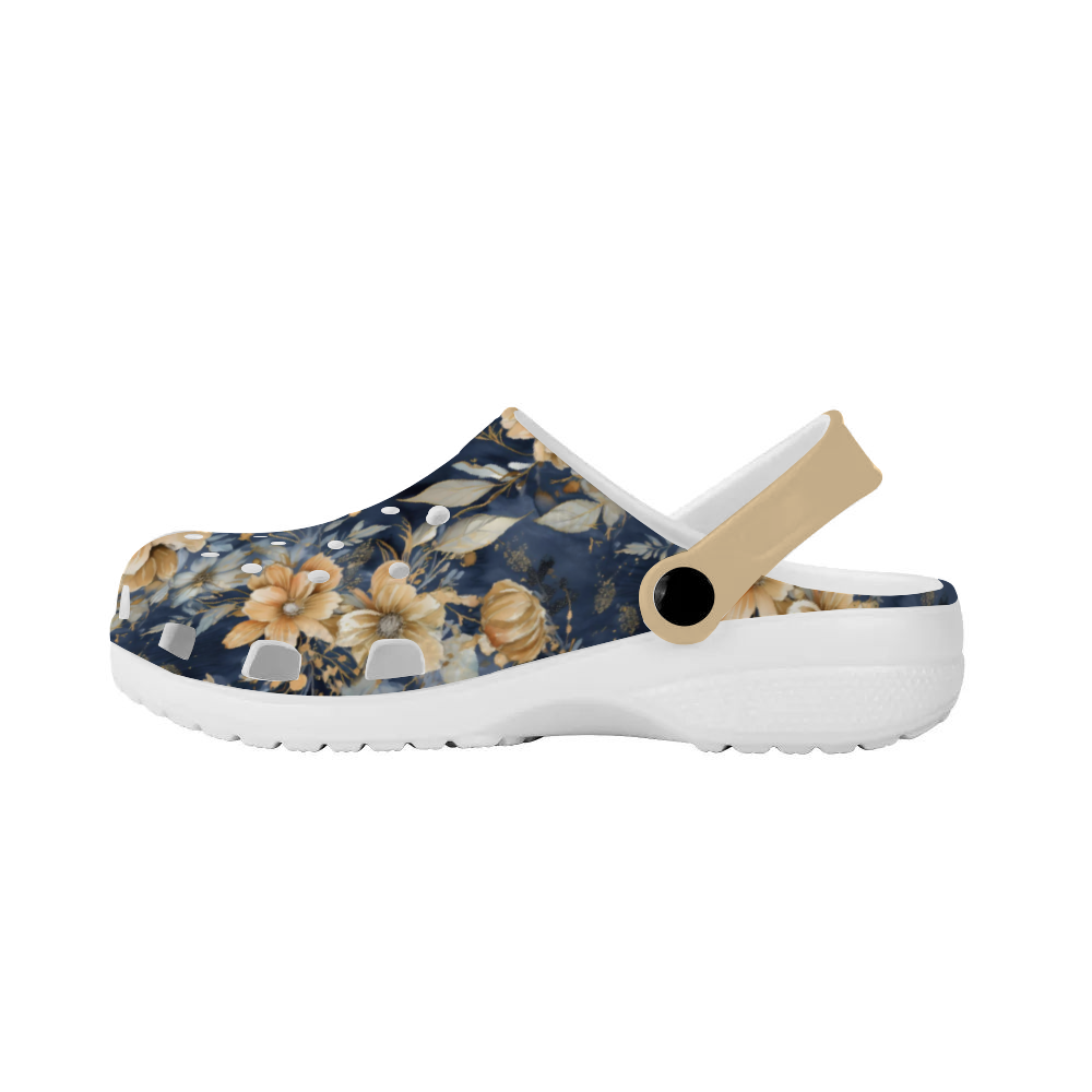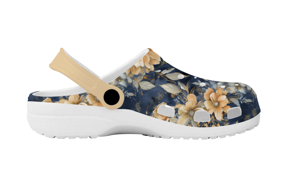 No matter who or what name tag you give them, these shoes are for anyone who is likes unique, and very comfortable shoes. And these floral navy blues with golden flower slip-on shoes are those shoes.
