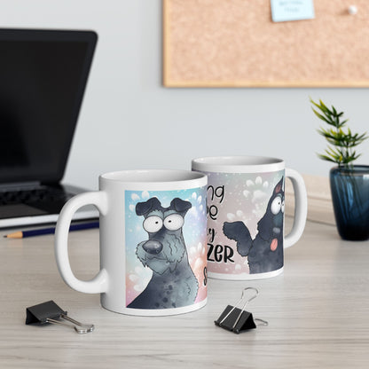 This high-quality humorously designed coffee mug is the perfect anyone who has a love for Schnauzer or just has a relaxed sense of humor. These cute cartoonish ceramic mugs are fun, and perfect for any animal lover. They are available in 2 sizes to meet your morning coffee needs.