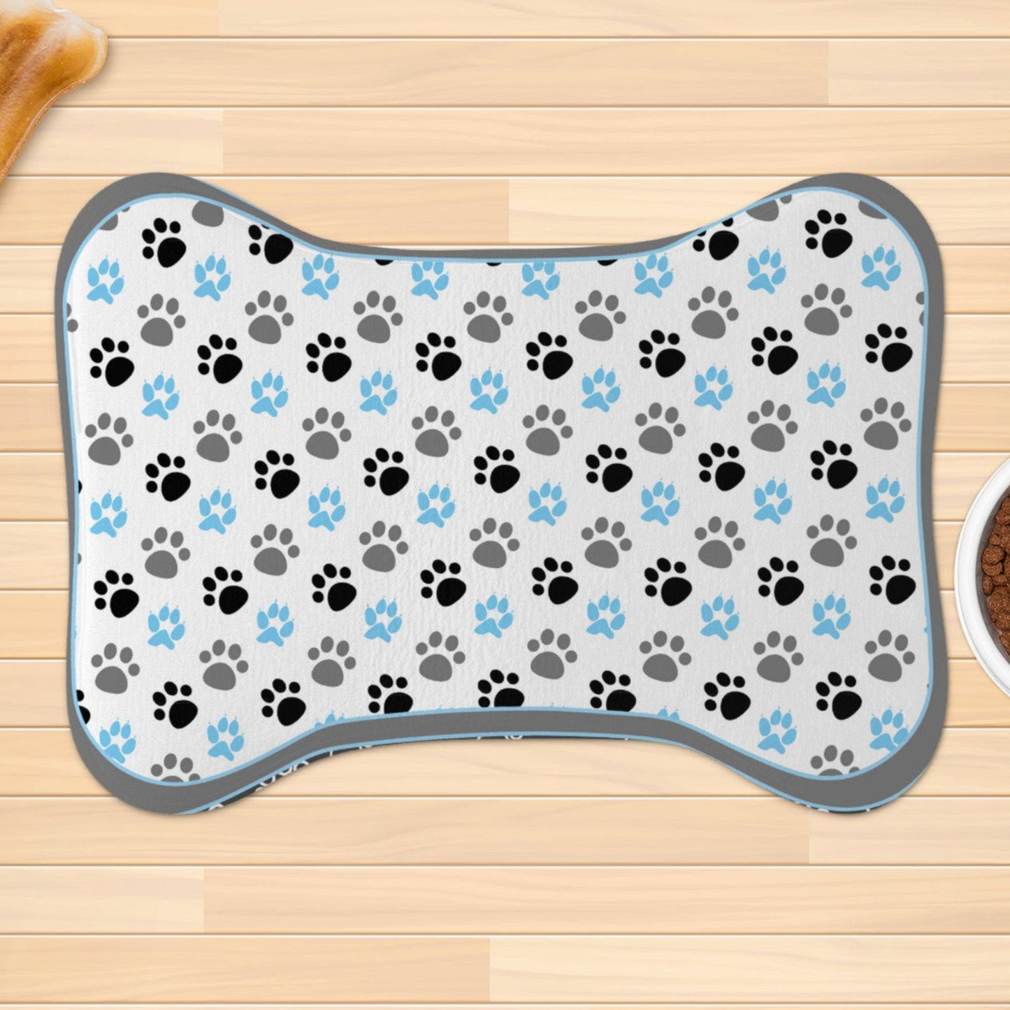 Dog Bone Shaped Rug, Dog Bone Mat, Paw Print Pet Mat, Blue, Gray and Black