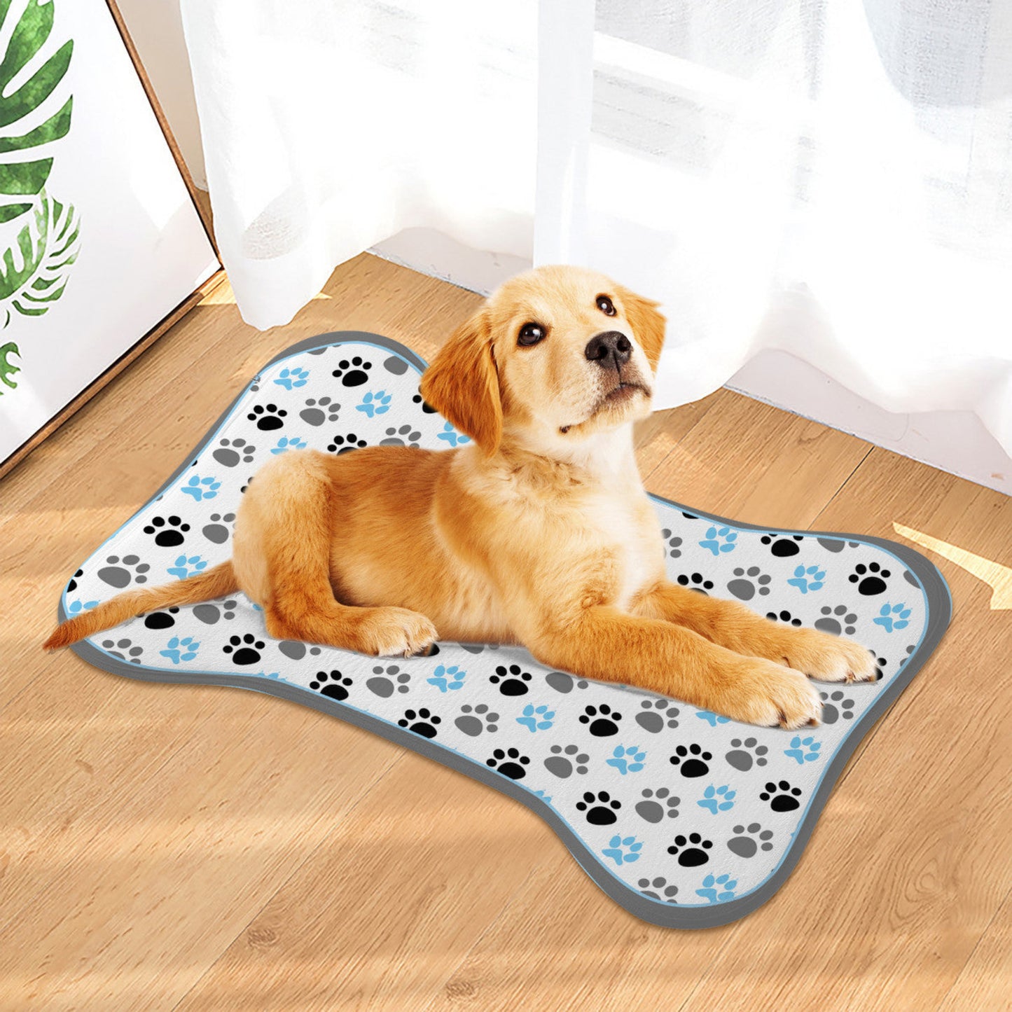 Dog Bone Shaped Rug, Dog Bone Mat, Paw Print Pet Mat, Blue, Gray, Black