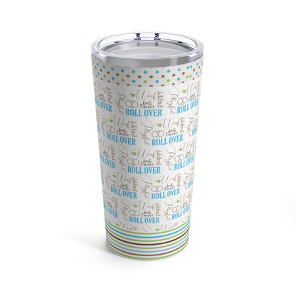 Dog Travel Tumbler, Travel Tumbler for Dog Owners, Roll Over Puppy, 20oz Dog Owner Stainless Steel Tumbler