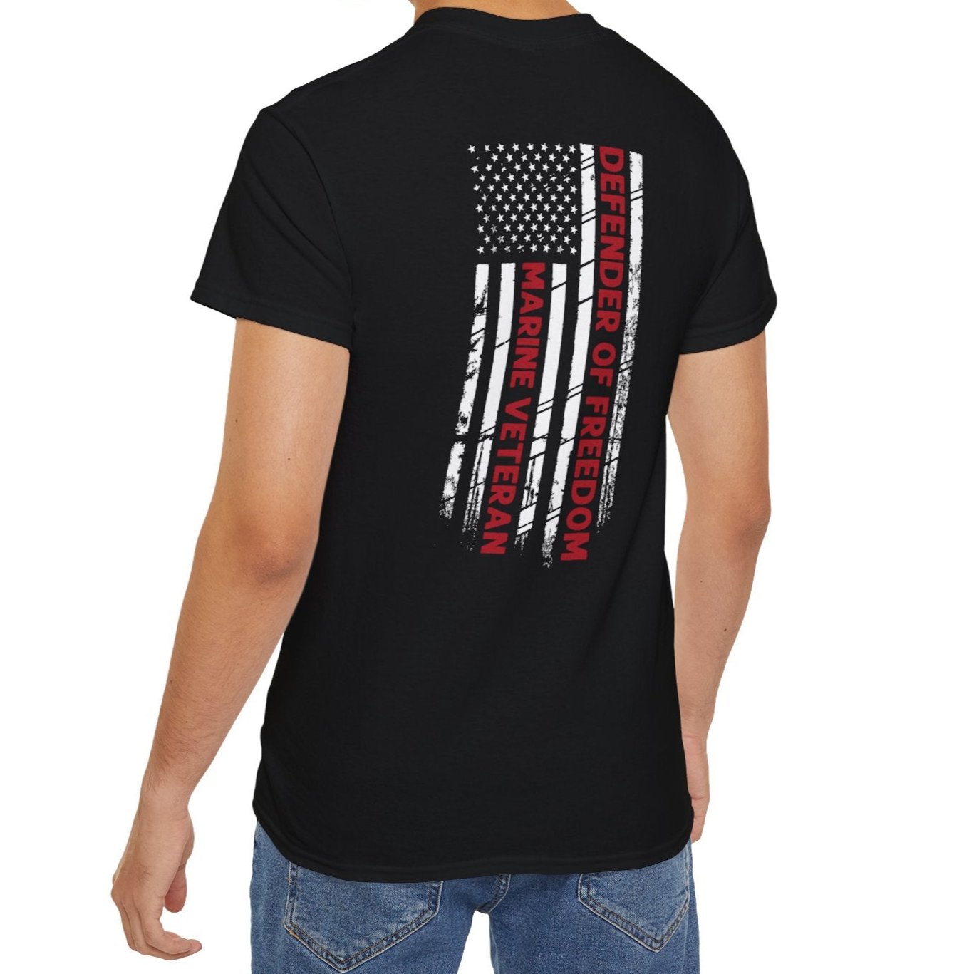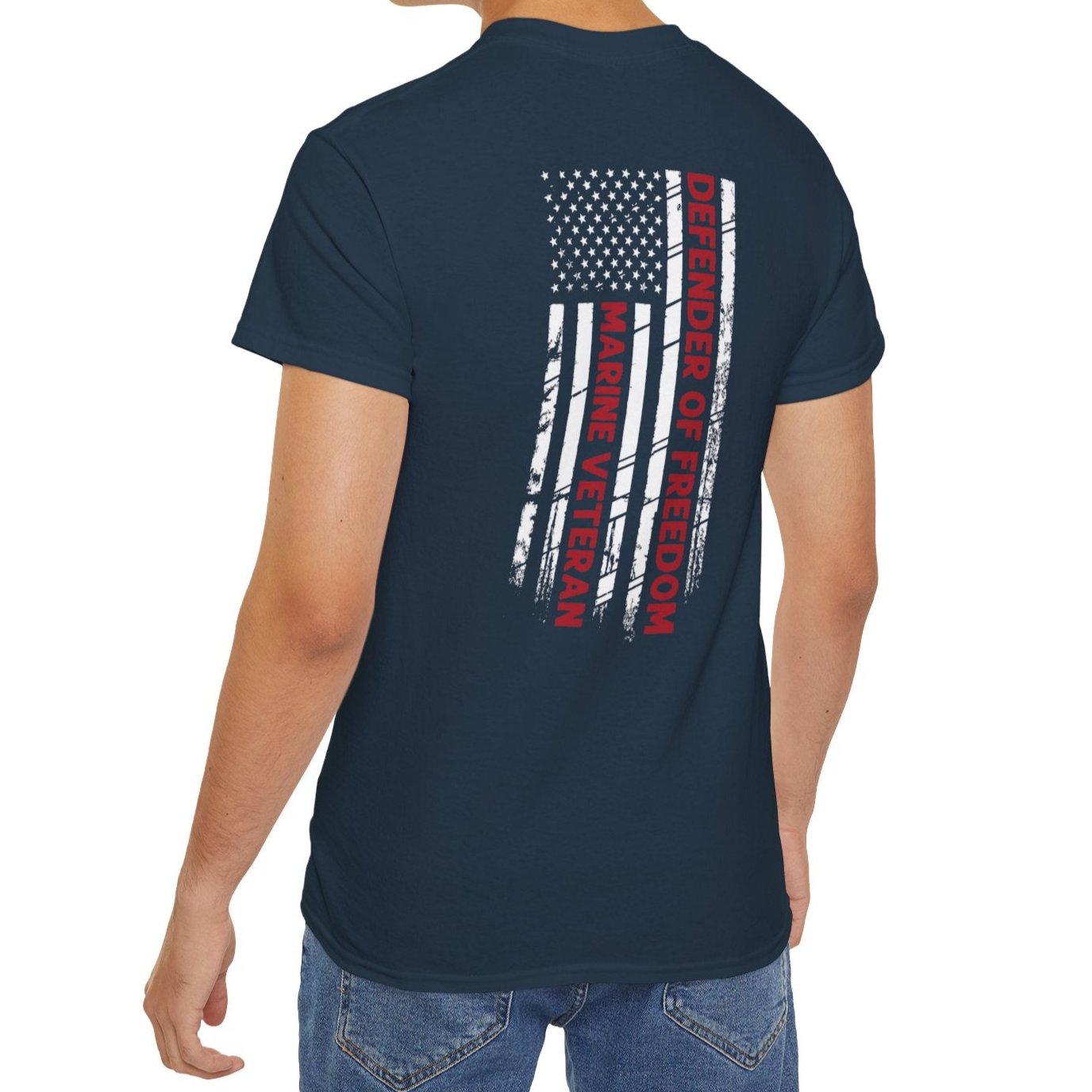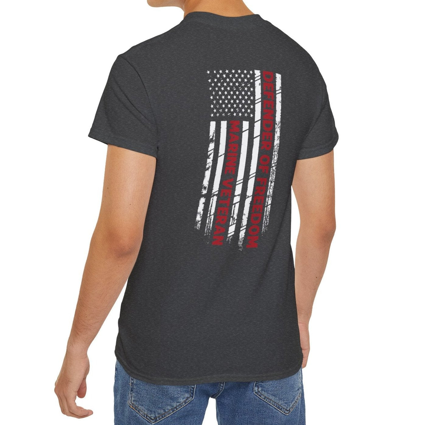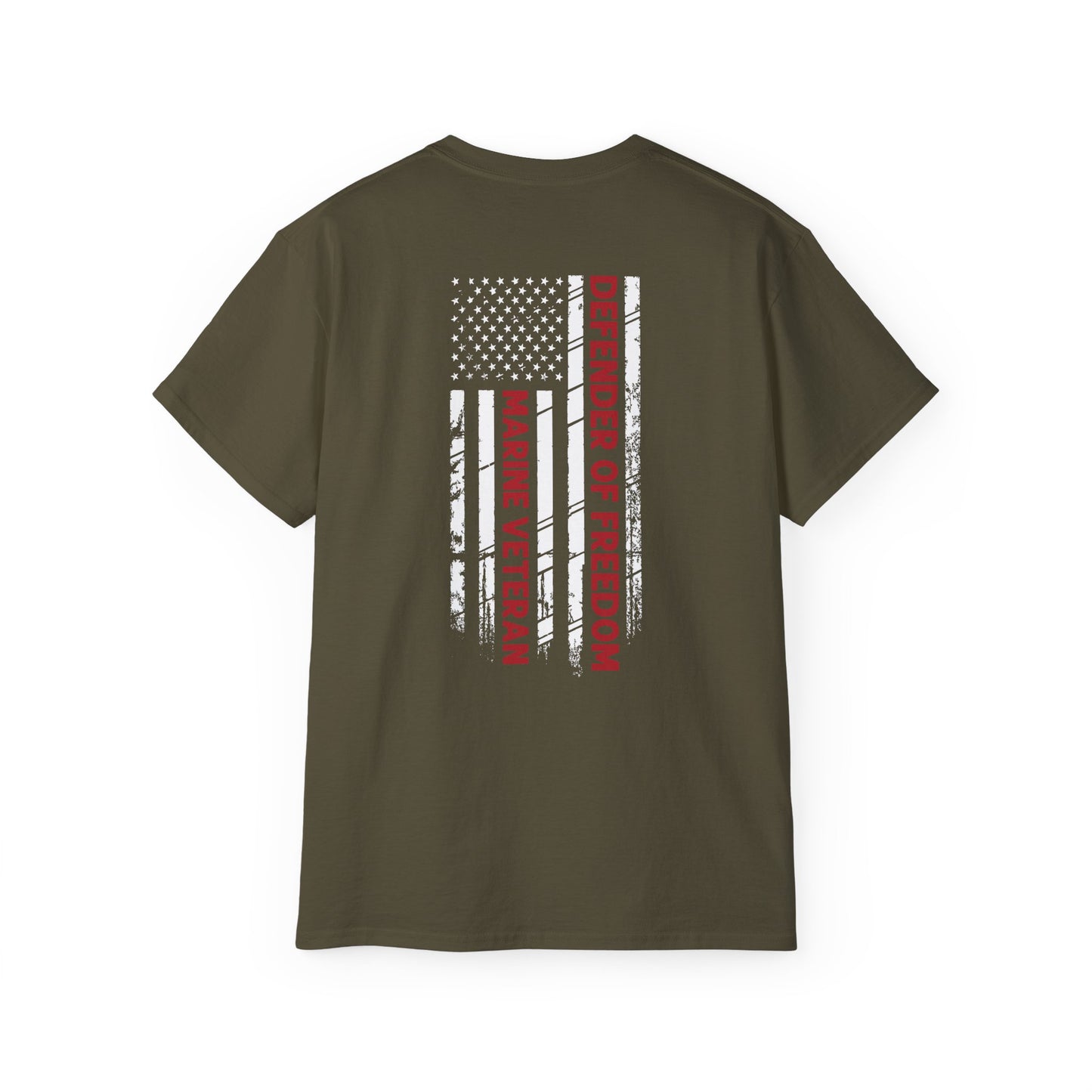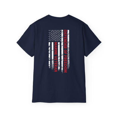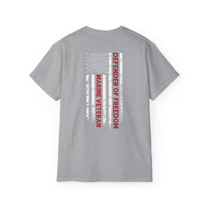 Marine Veteran, Defender of Freedom, Front and Back Design, Cotton/Polyester T-Shirt