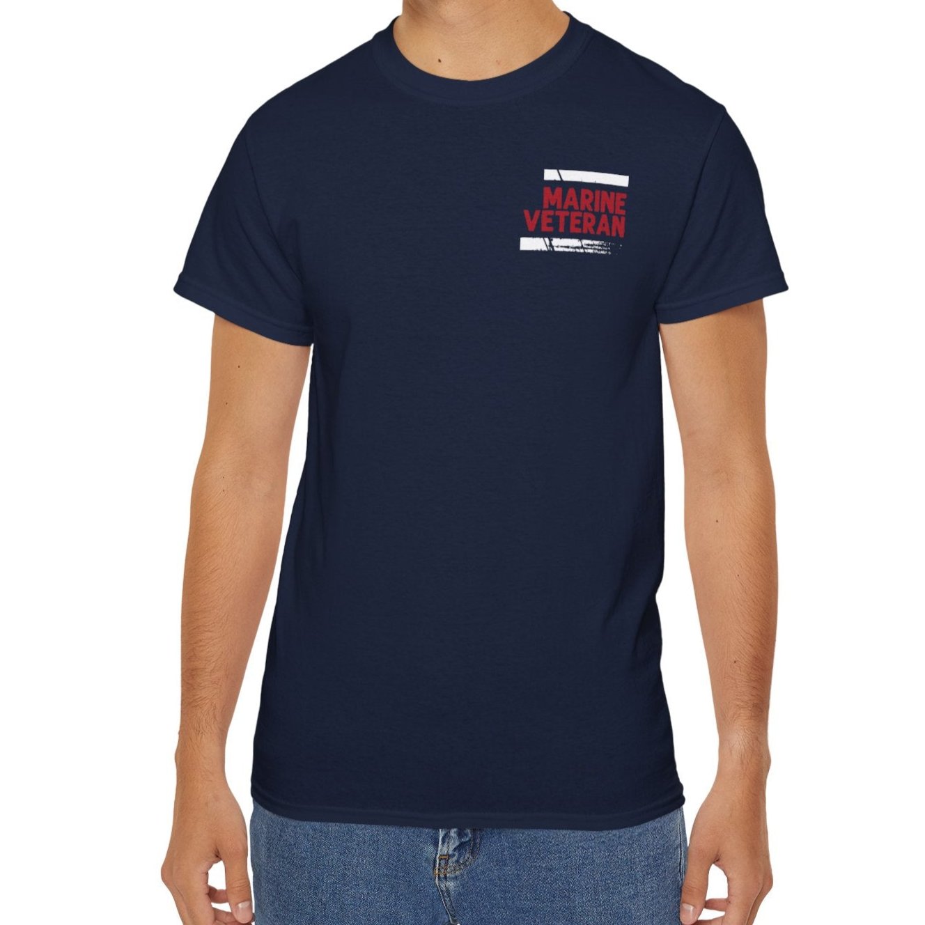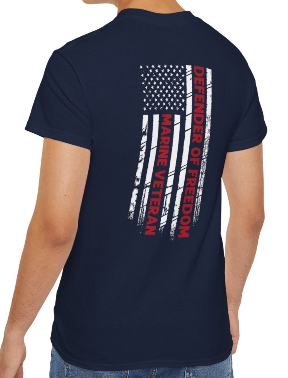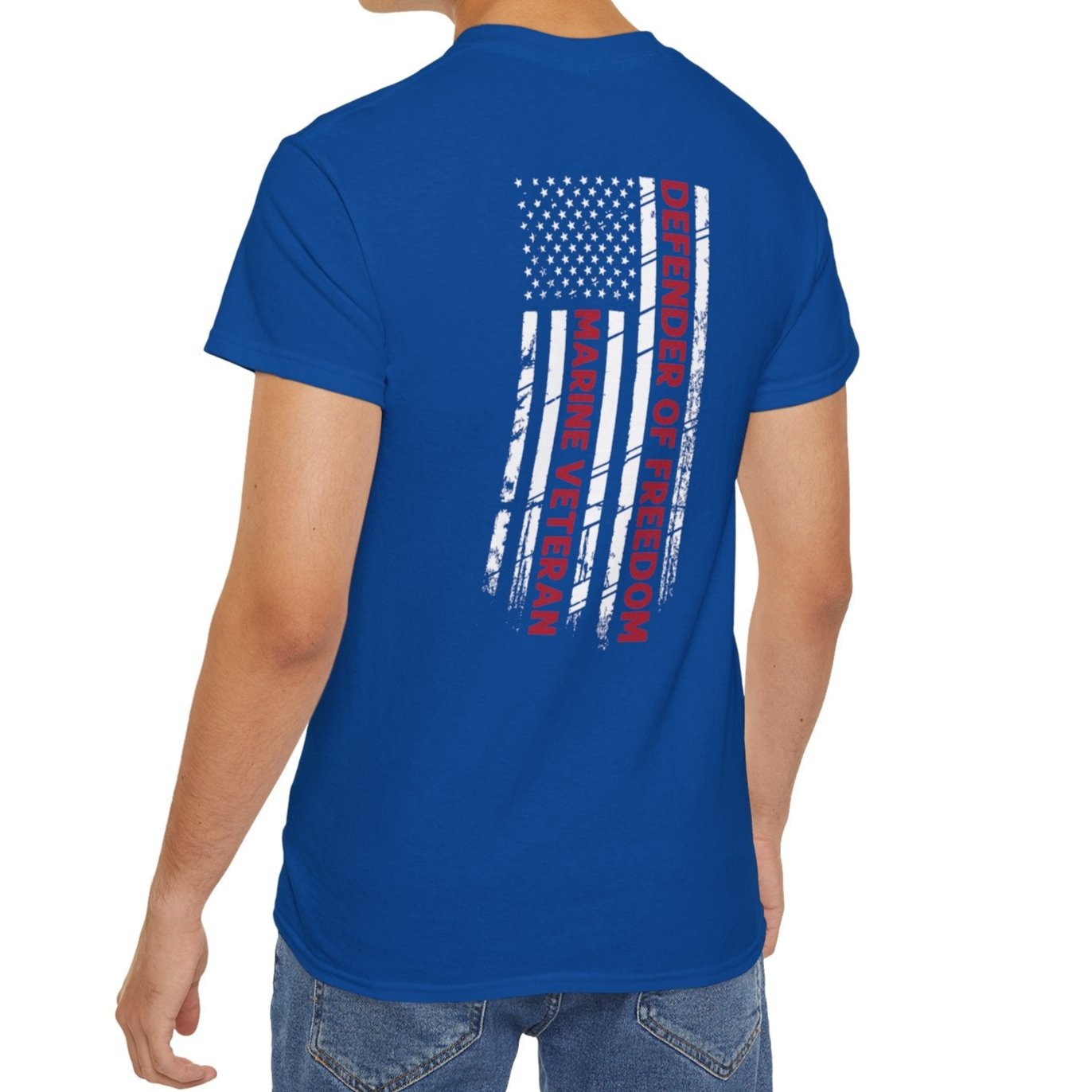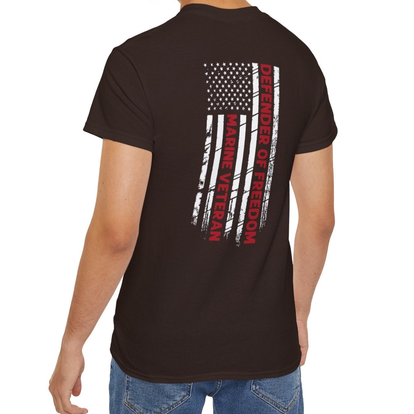 Marine Veteran, Defender of Freedom, Front and Back Design, Cotton/Polyester T-Shirt