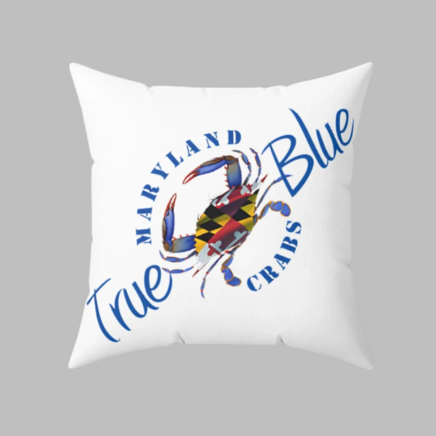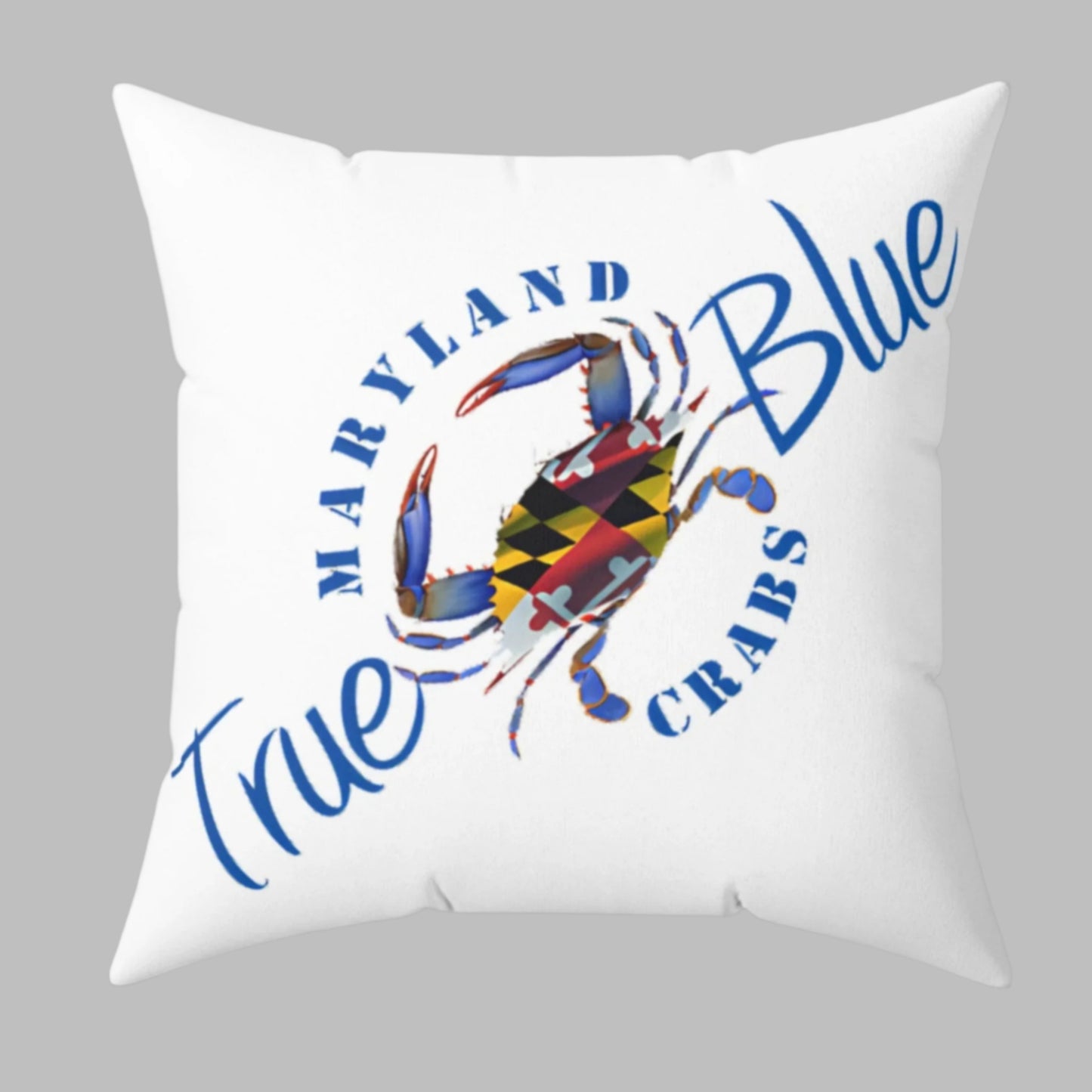 This Maryland Blue Crab throw pillow is for those who love Maryland Blue Crabs. These beautiful indoor MD True Blue Crab accent pillows are available in various sizes and serve as statement pieces, creating a nautical/coastal environment. The Maryland blue crab throw pillows are soft, machine-washable, and come with a case with a shape-retaining insert.