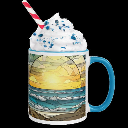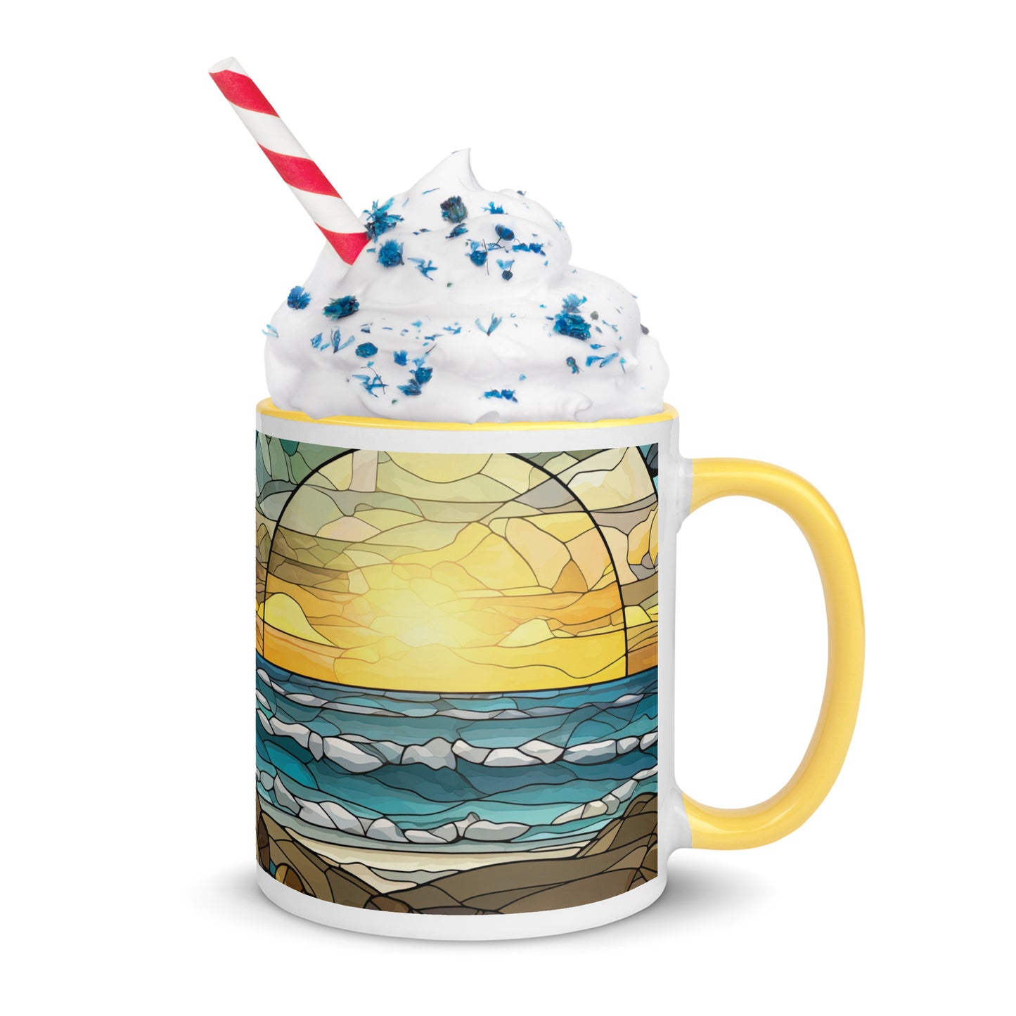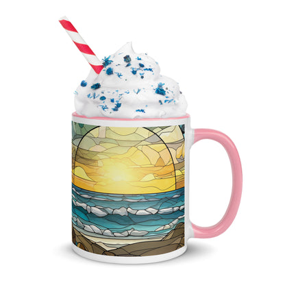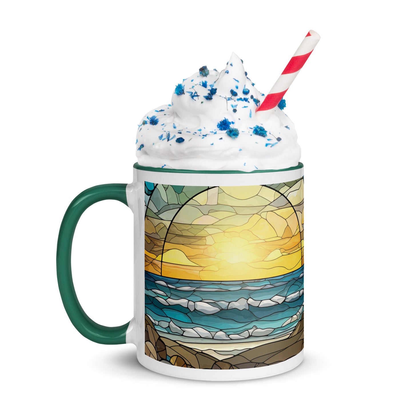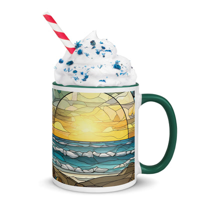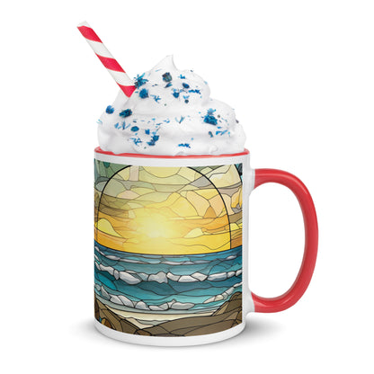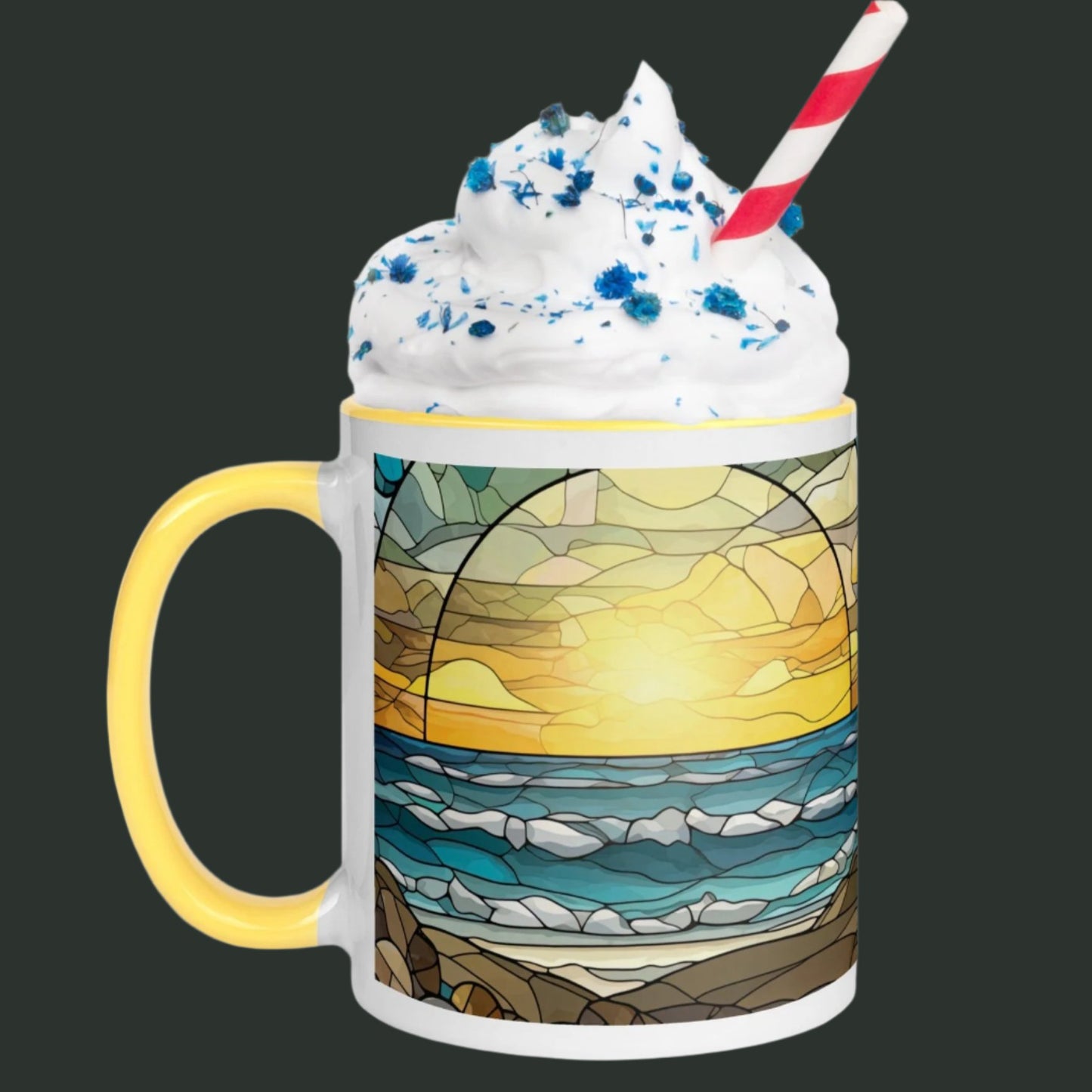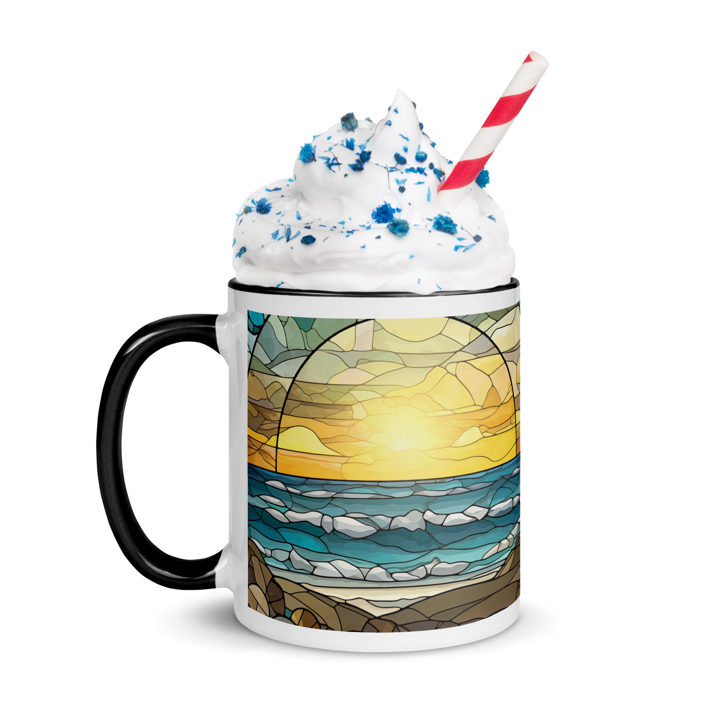 This high-quality beach stained glass coffee mug is the perfect any beach lover or someone who just has a love for the natural beauty of the coast. These ceramic mugs not only have a fun, beautiful and unique coastal design on them, but also has a colorful matching rim, handle, and inside.