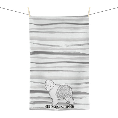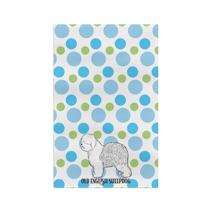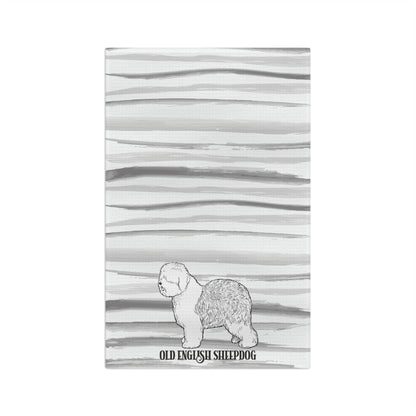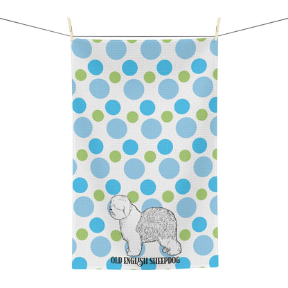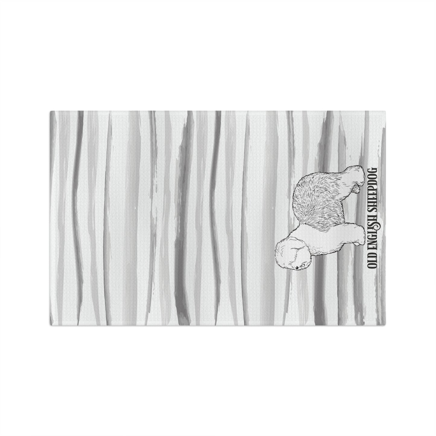 These decorative and functional 16" x 25" weave microfiber Old English Sheepdog kitchen towels are perfect anyone who loves Old English Dogs or is just a huge bobtail lover. Many colors and designs to choose from, all having a beautiful detailed black and white OES graphic design.