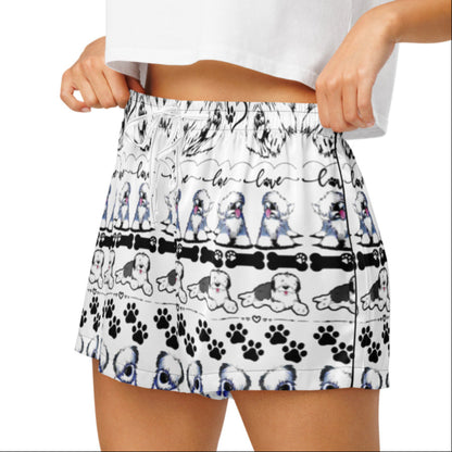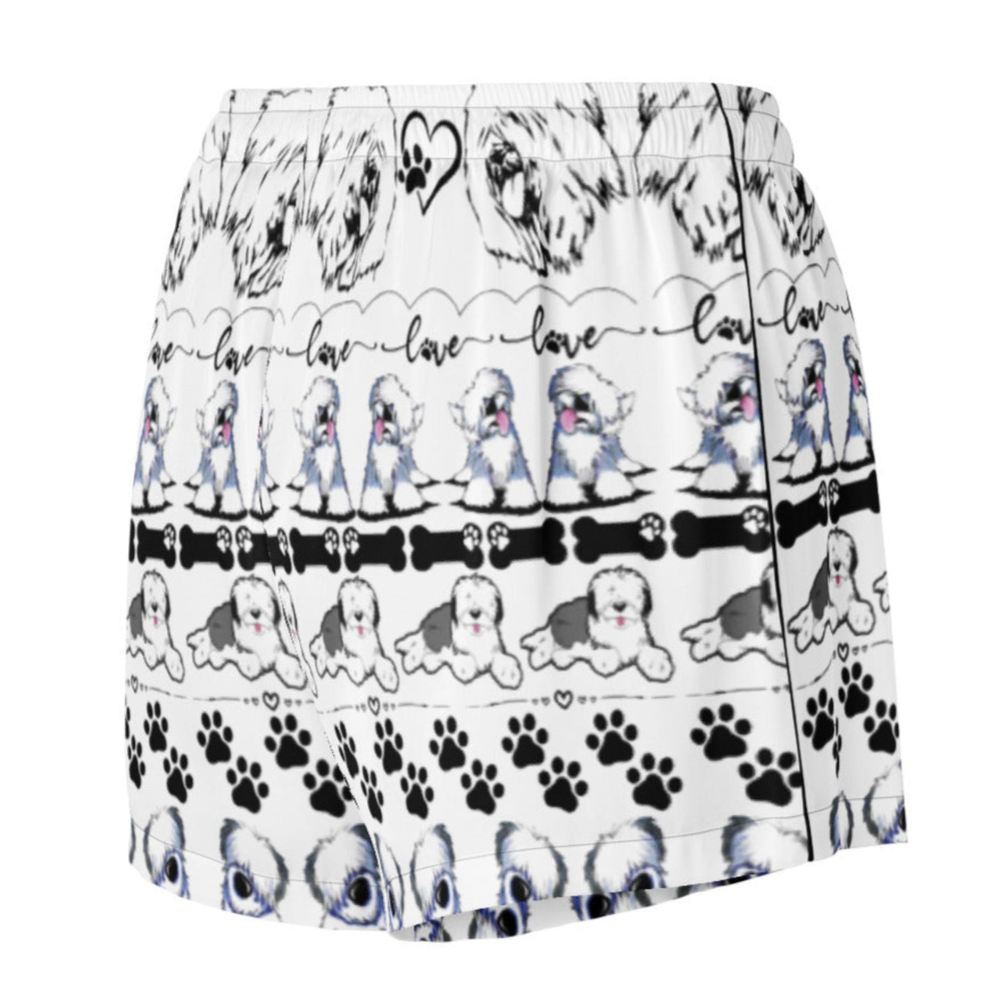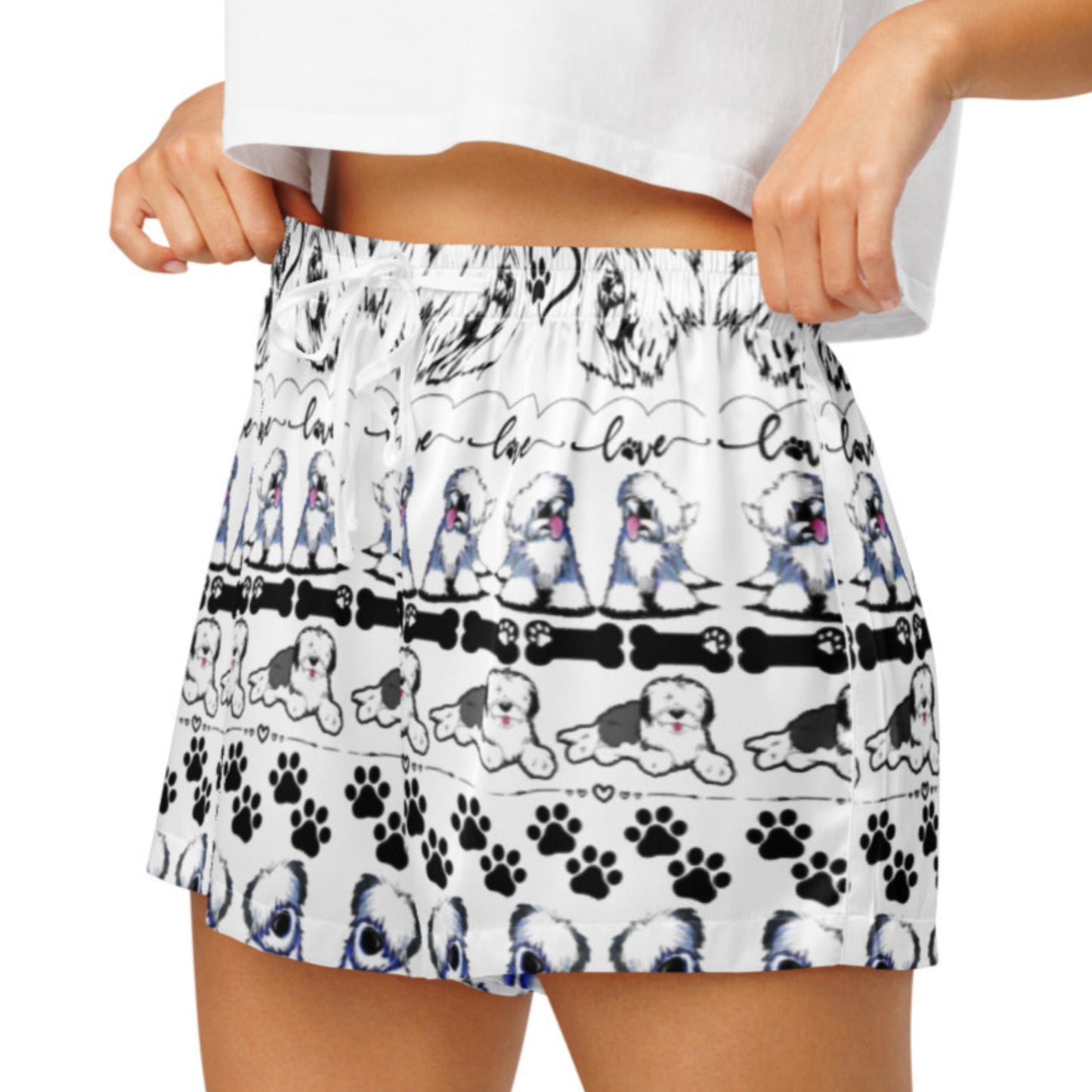 Old English Sheepdog Pajama Shorts, Women’s white pajama shorts