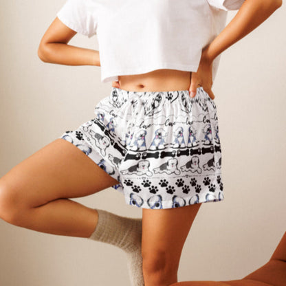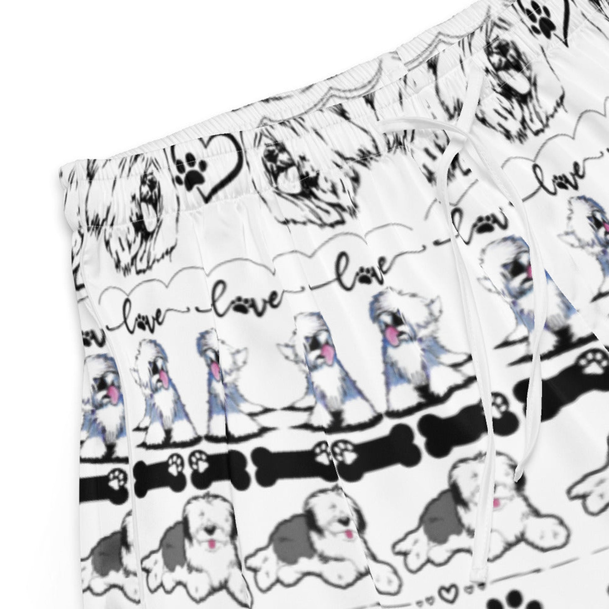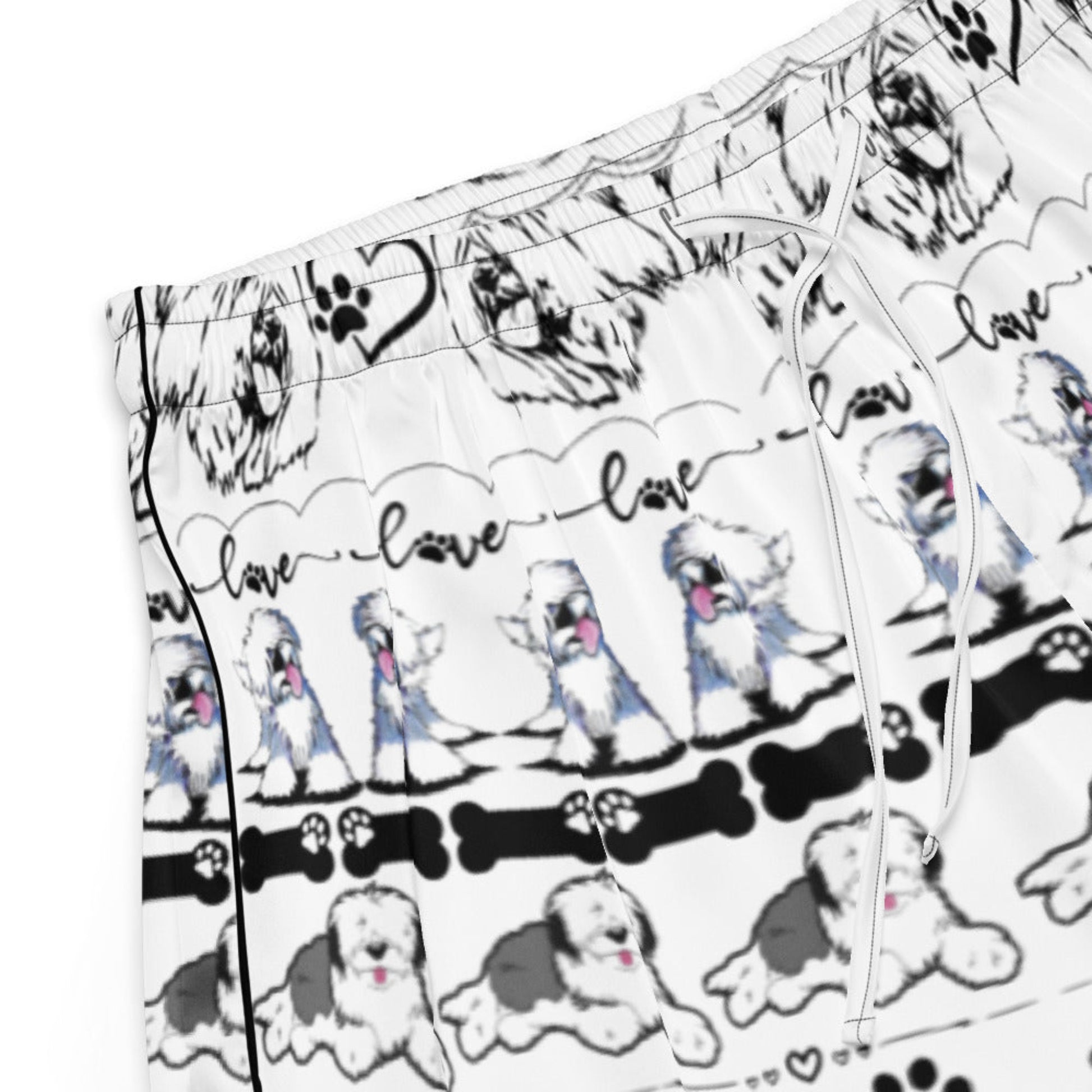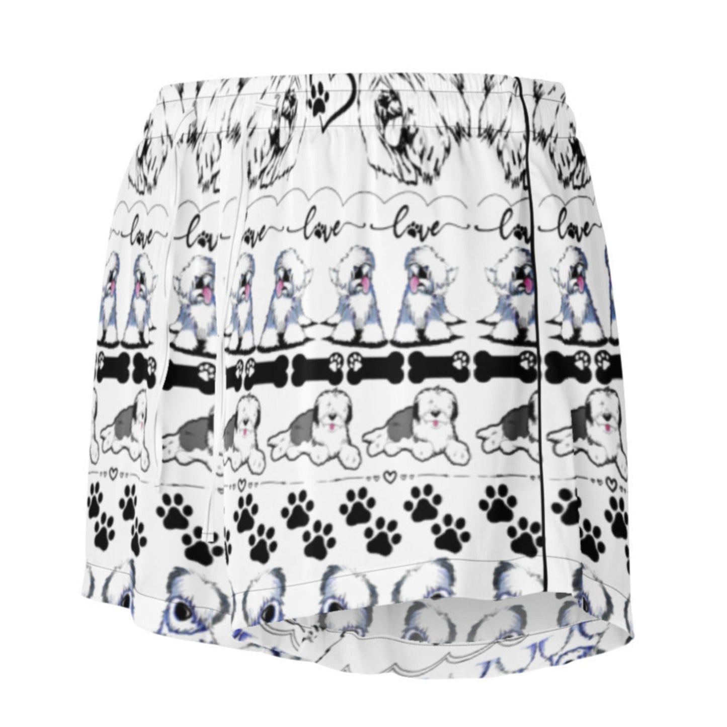 Old English Sheepdog Pajama Shorts, Women’s white pajama shorts