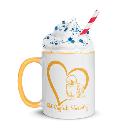 Old English Sheepdog with Heart, Gold, Ceramic Coffee Mug
