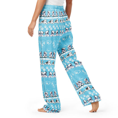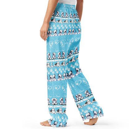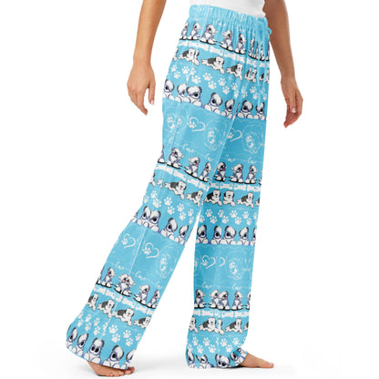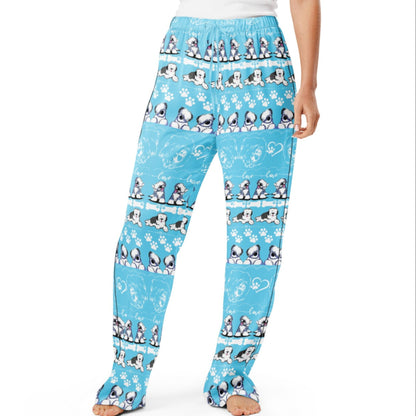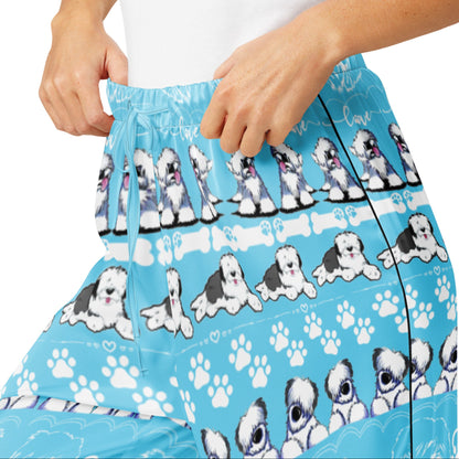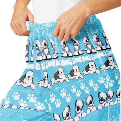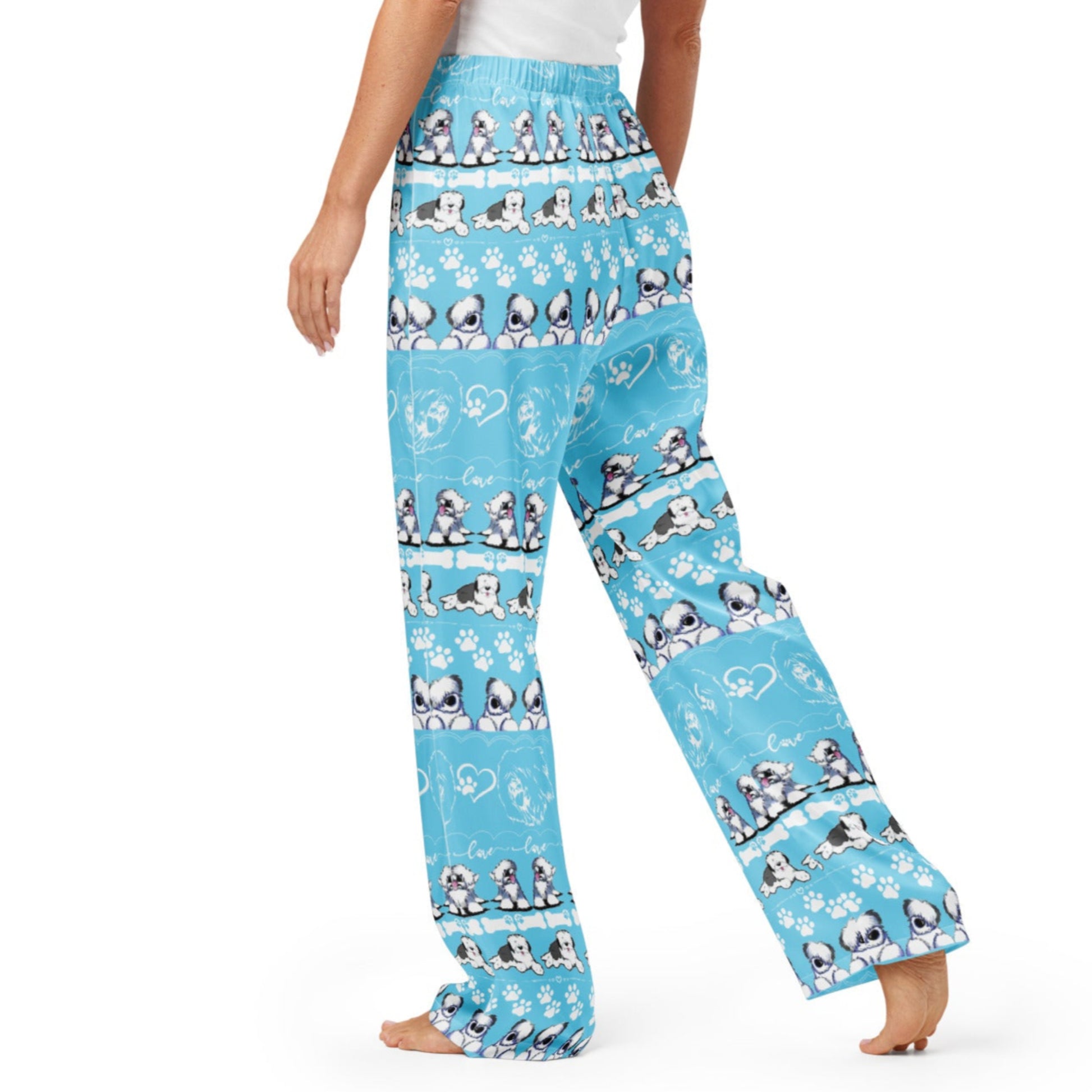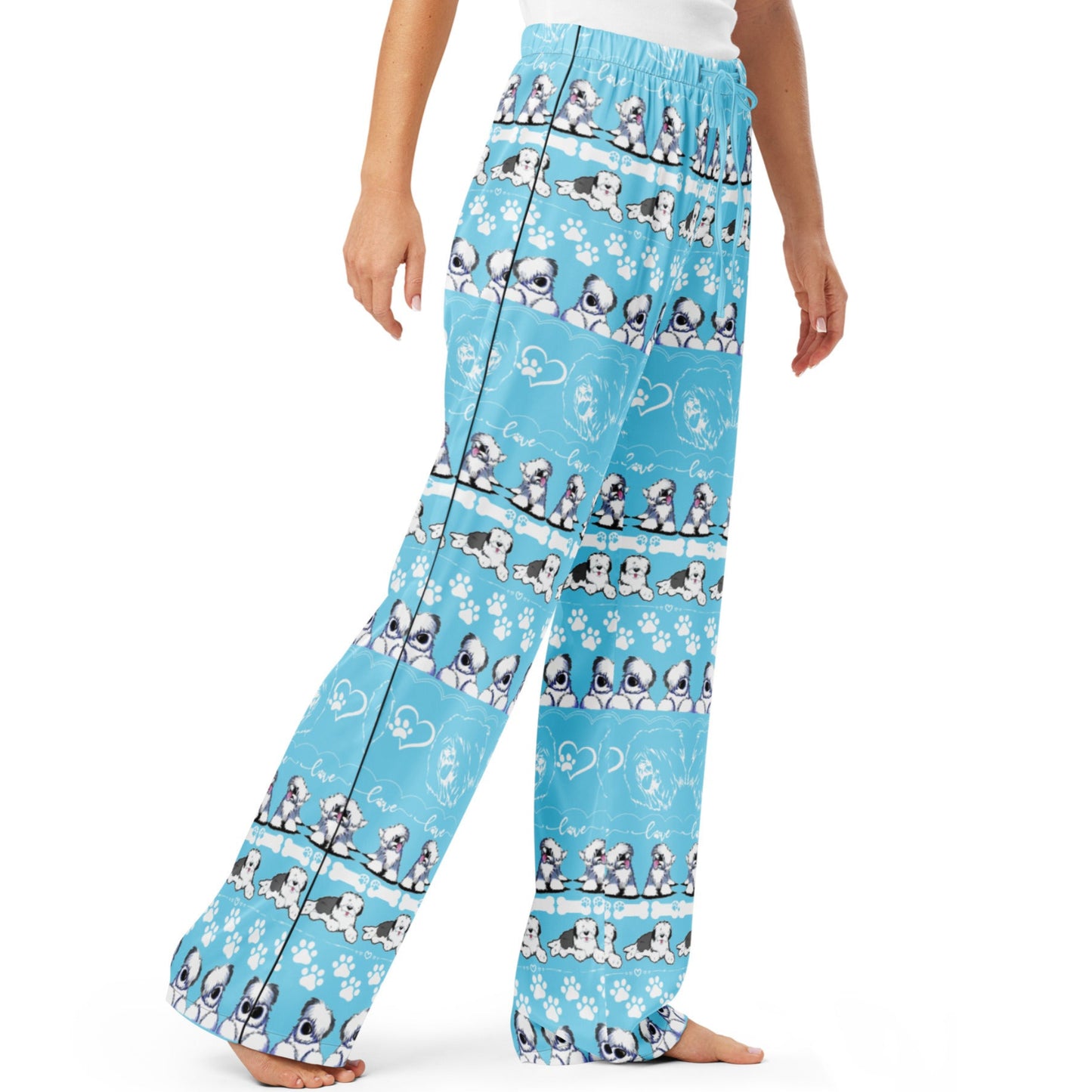 Old English Sheepdog Women's Pajama Pants, Old English Sheepdog Baby Blue Loungewear Pants