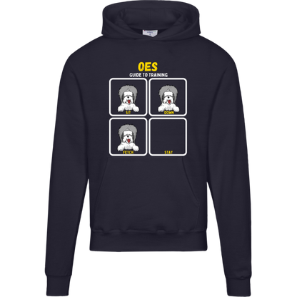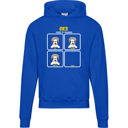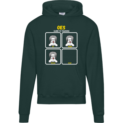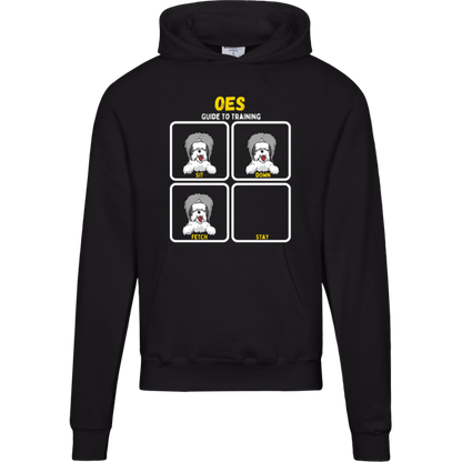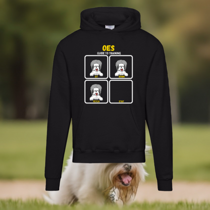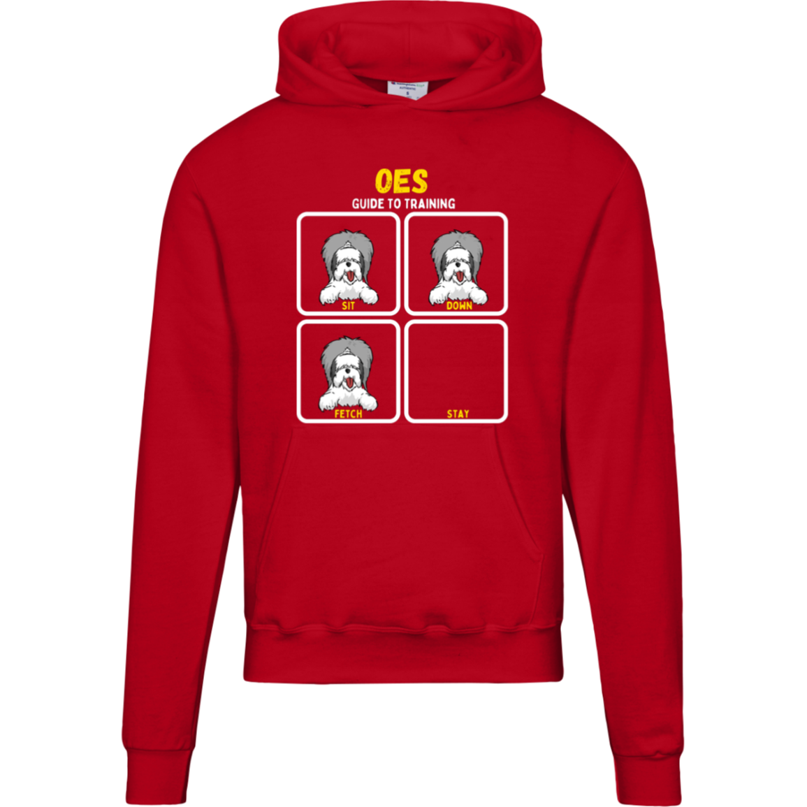 This ultra cotton long sleeve Champion hoodie features a colorful and playful OES training guide graphic, perfect for anyone who loves to Old English Sheepdogs. It offers a classic fit and shoulder tape for durability. The playful twist on training an sheepie gives it a fun and humorous vibe, making it a great addition to any Old English Sheepdog owners wardrobe.