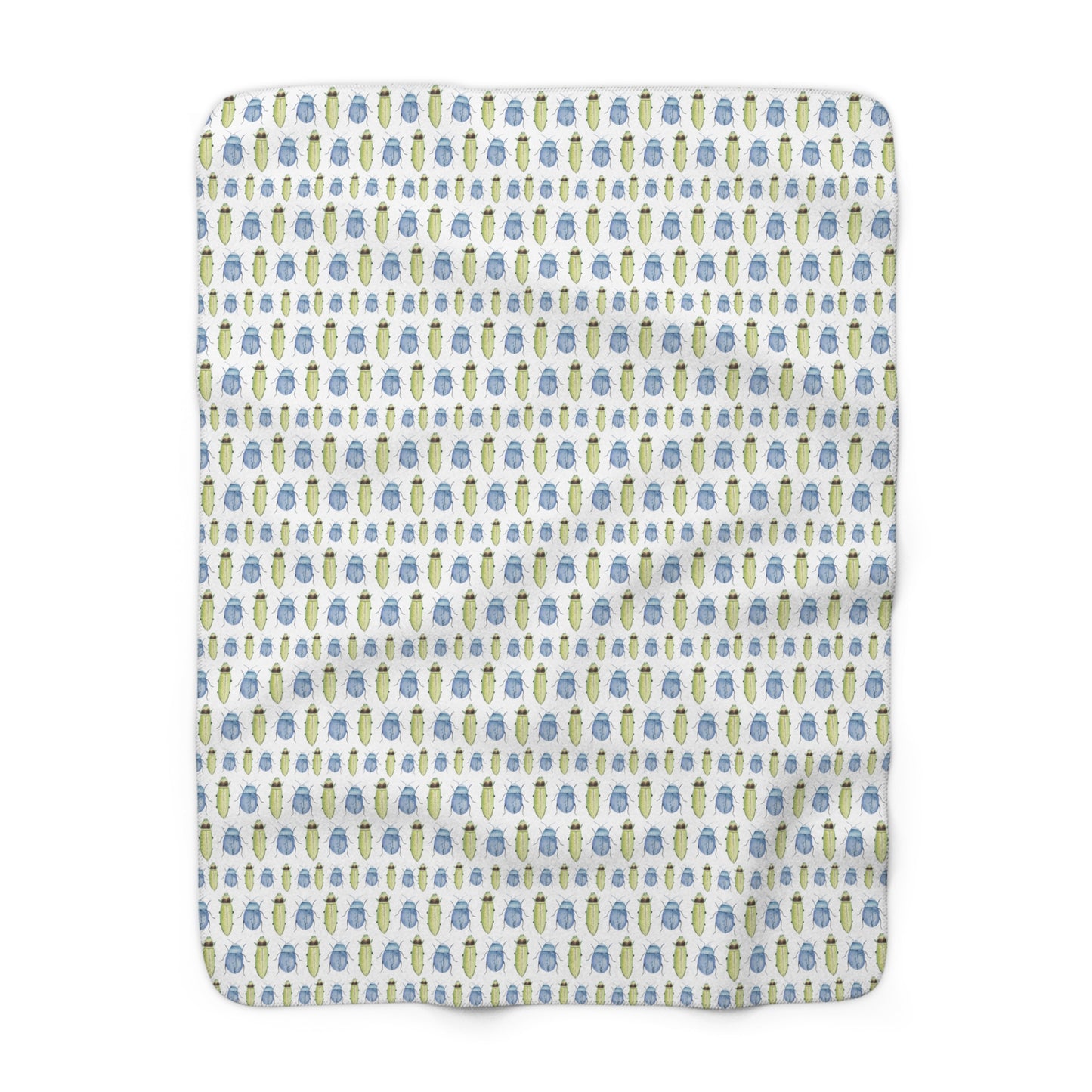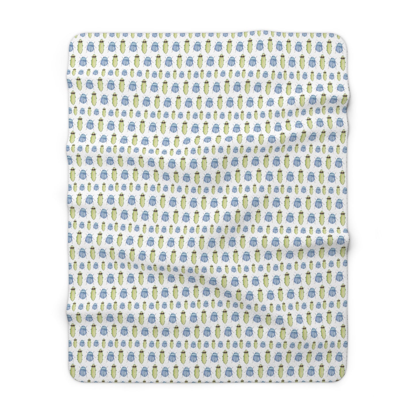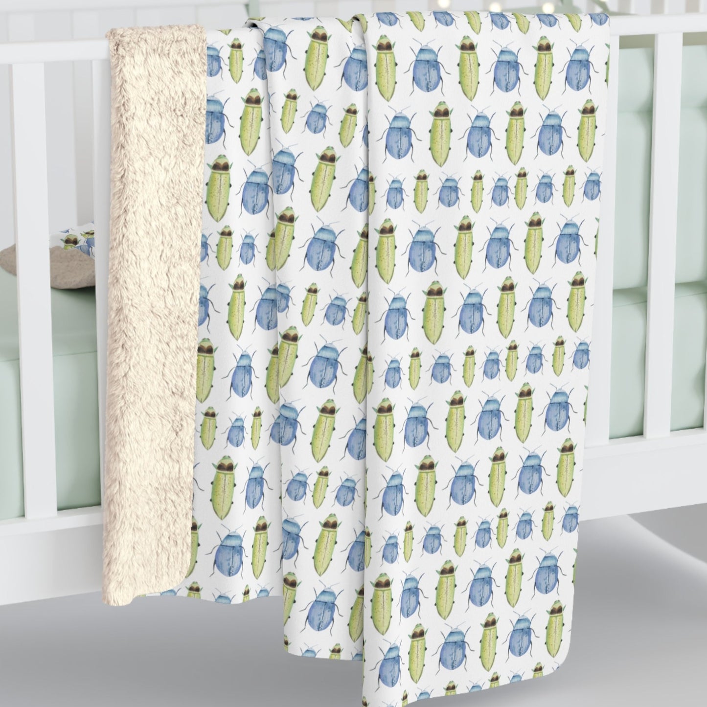 Blanket, Little Boys Blanket with Insects, Throw Blanket with Insect Design, Blue Green
