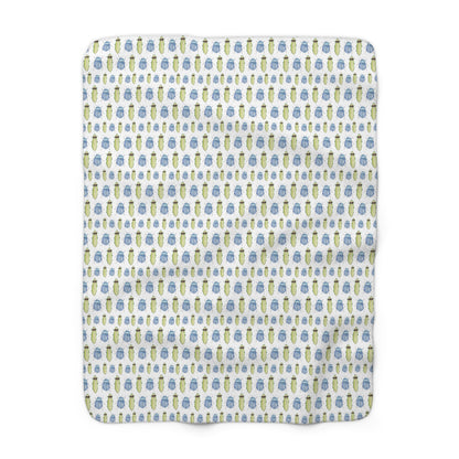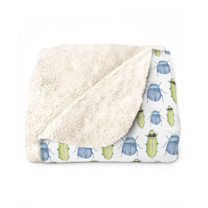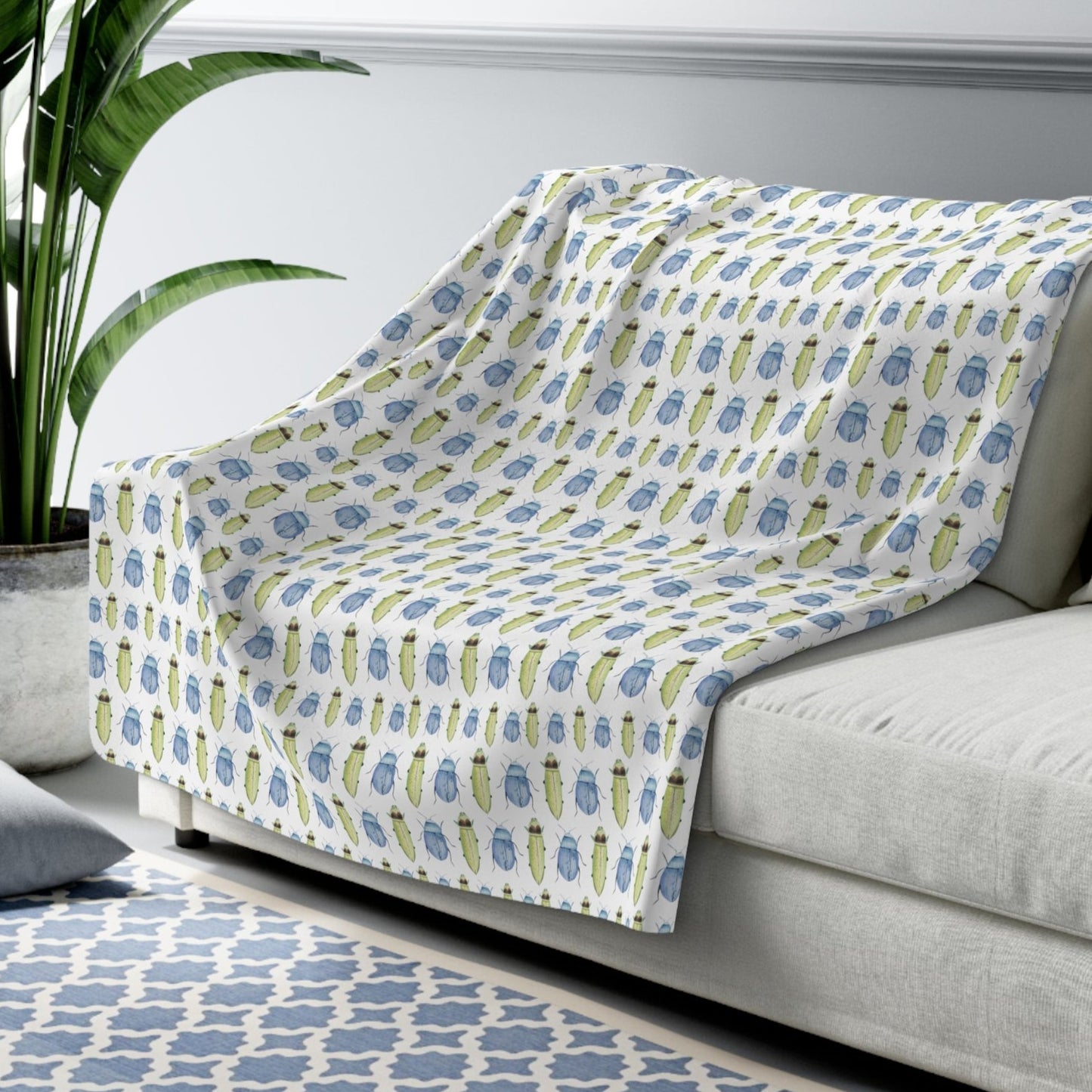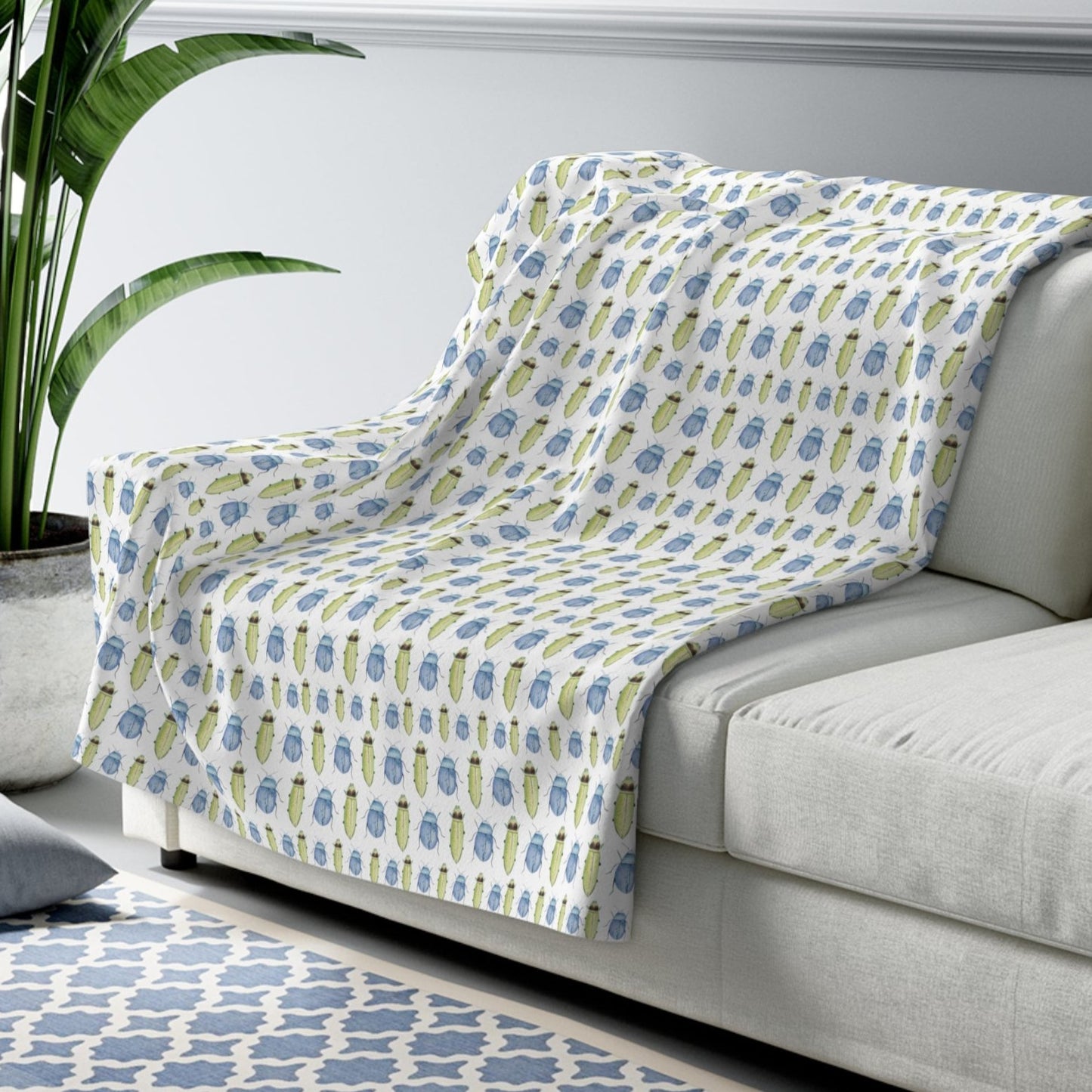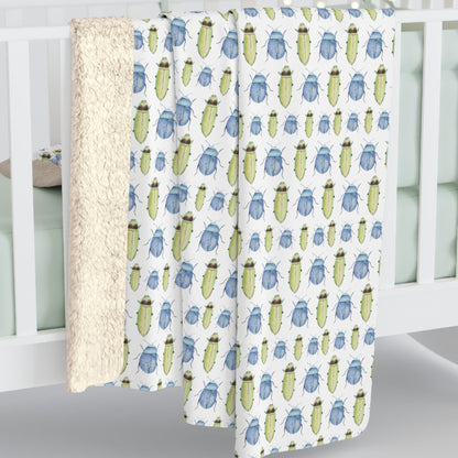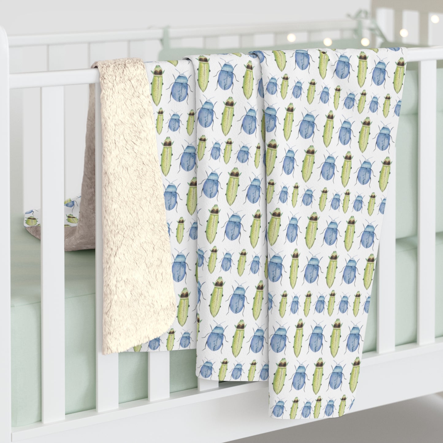Blanket, Little Boys Blanket with Insects, Throw Blanket with Insect Design, Blue Green