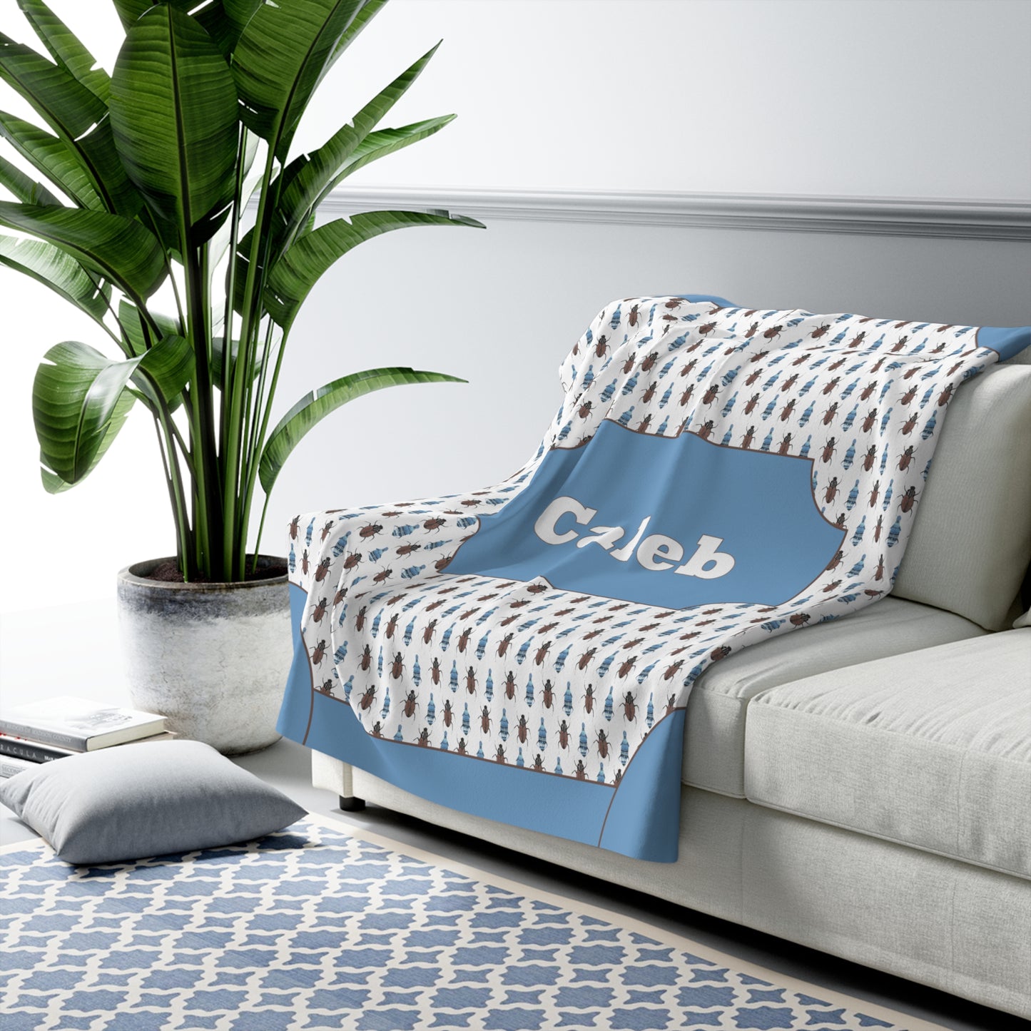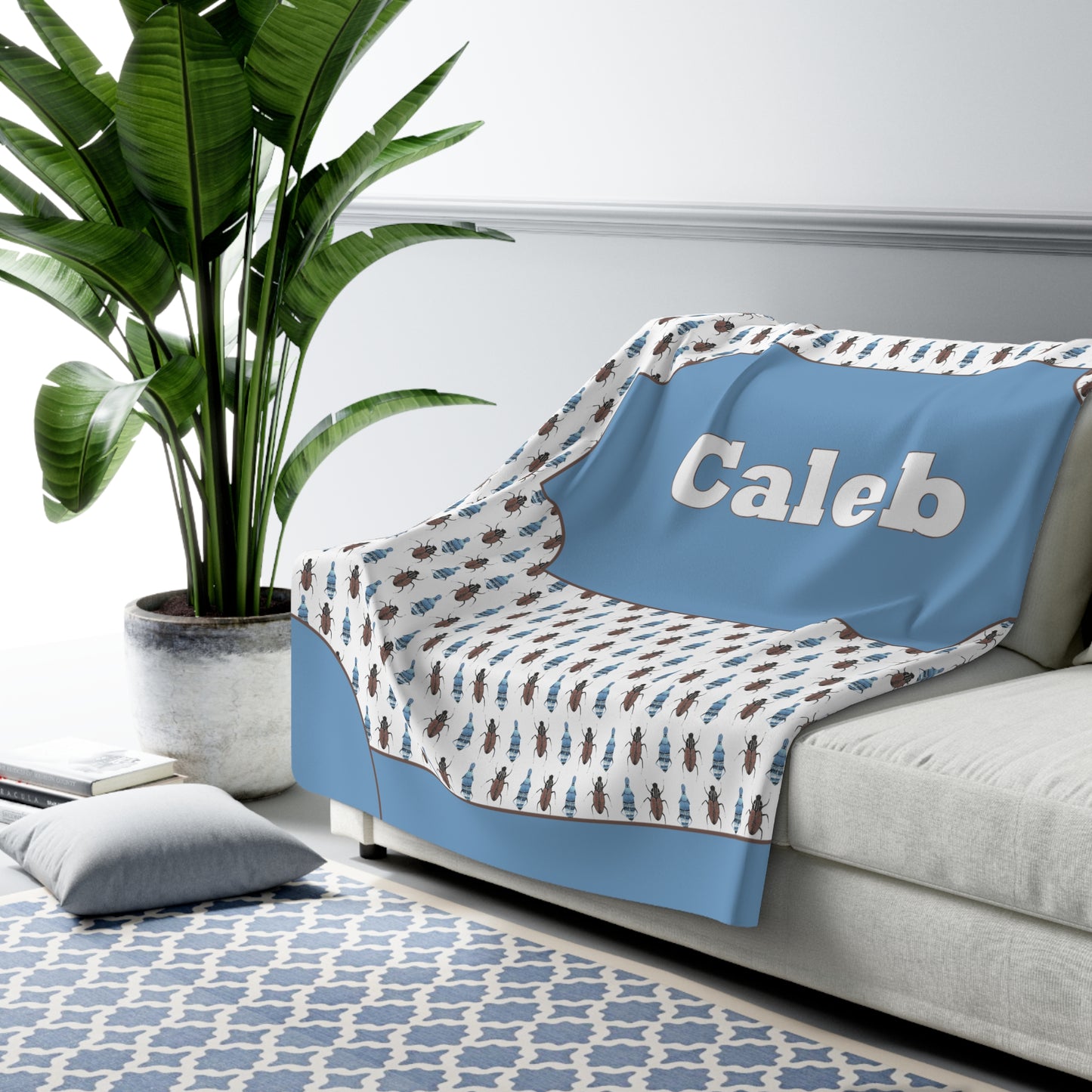 Blanket, Little Boys Blanket, Throw Blanket, Boys Blanket with Cool Insects, Blue Brown, Personalized