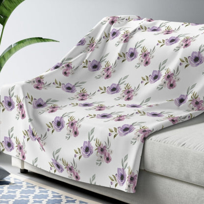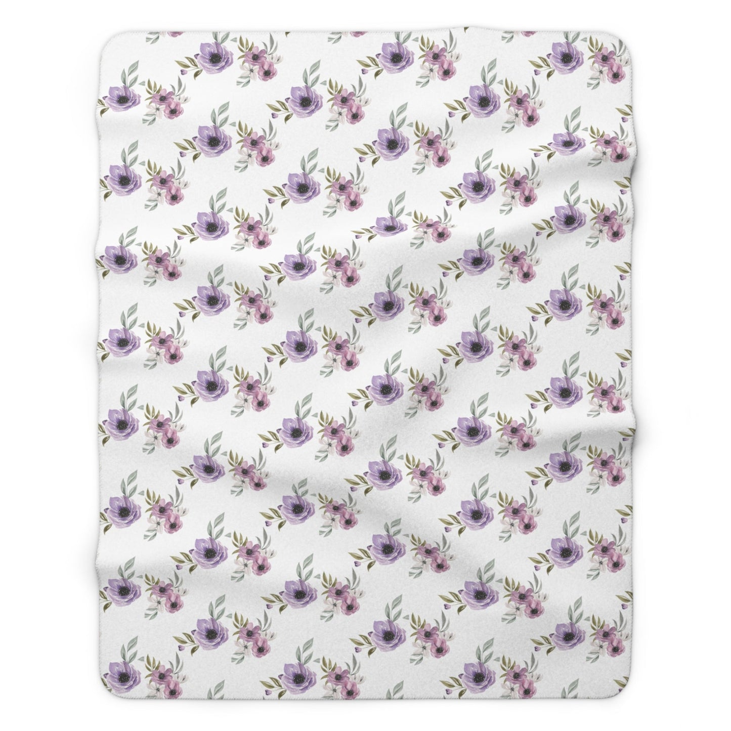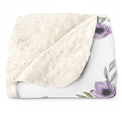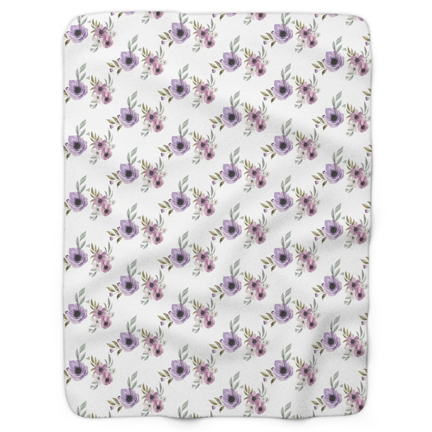 Purple Floral Throw Blanket, Floral Throw Blanket, Purple Floral Sherpa Throw Blanket