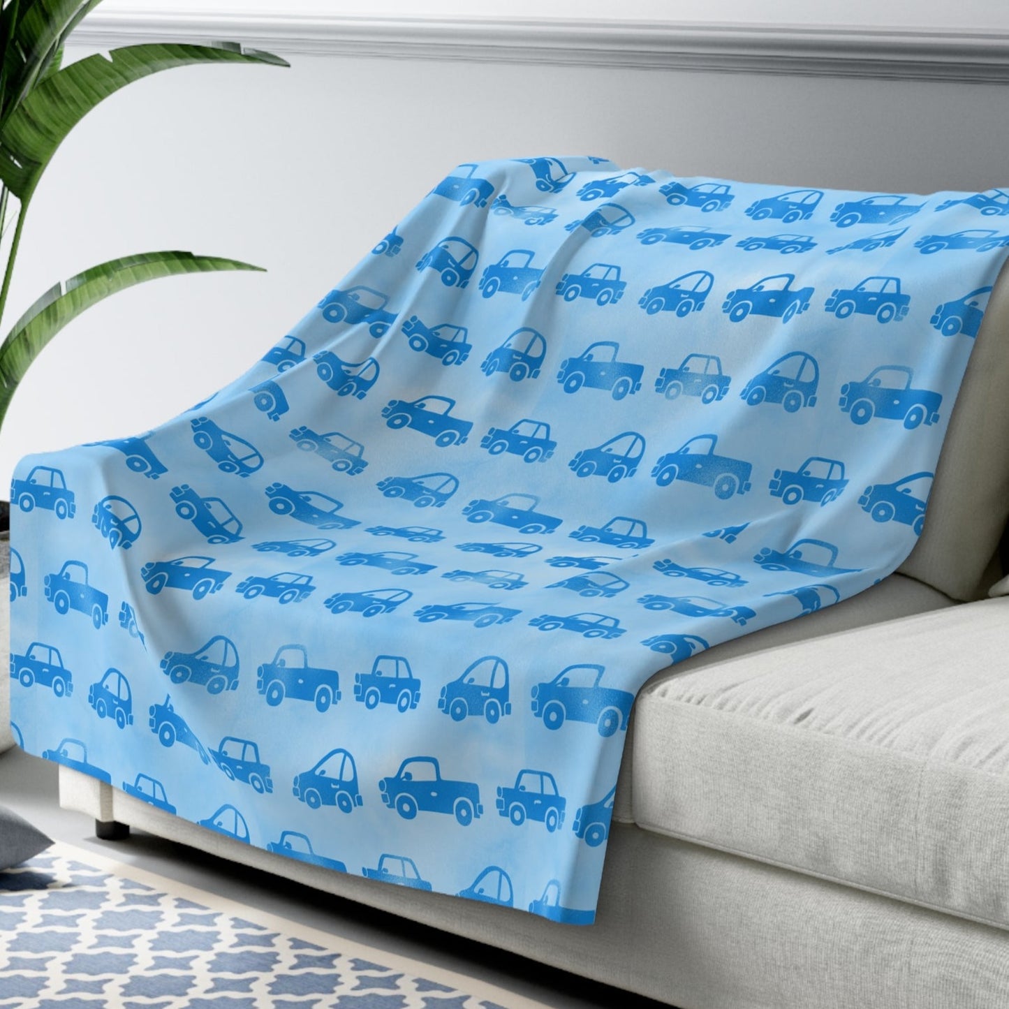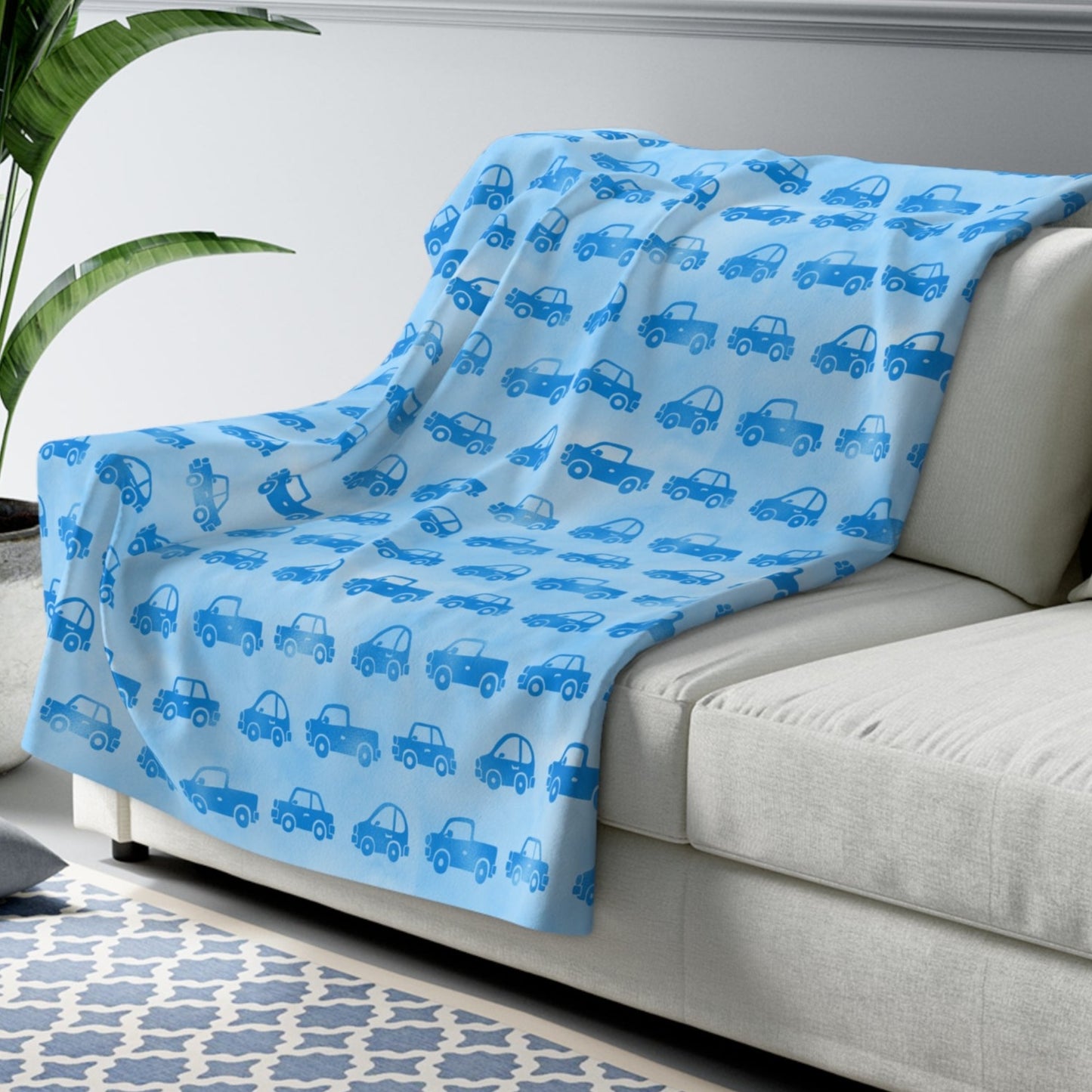 Cozy and cute little boy's blue throw blanket with truck and cars, a soft comfy blue blanket, bedroom decor with cars and/or trucks, or a plush throw blanket with cars and trucks, if any of those thoughts entered your mind when thinking about the type of blanket you want, then you have found the perfect throw blanket.