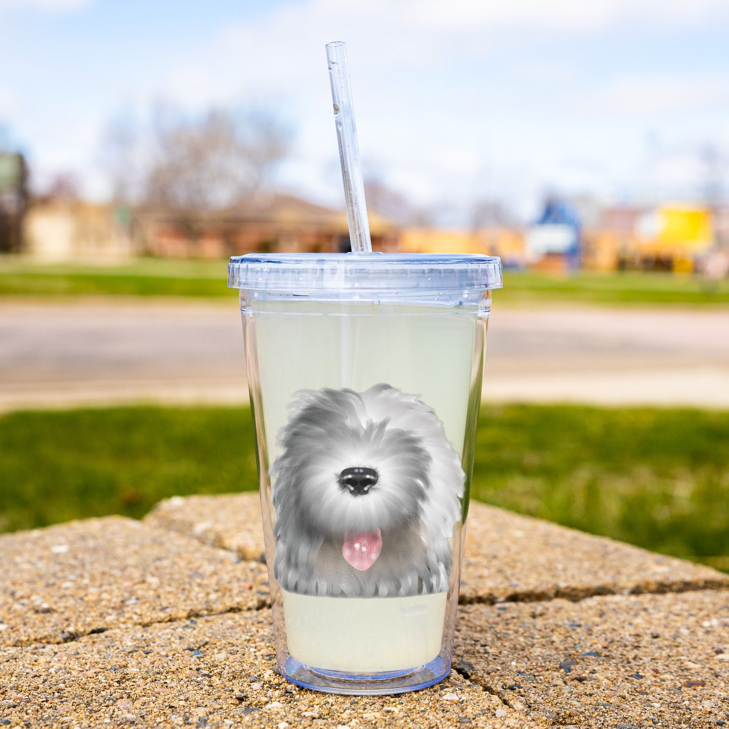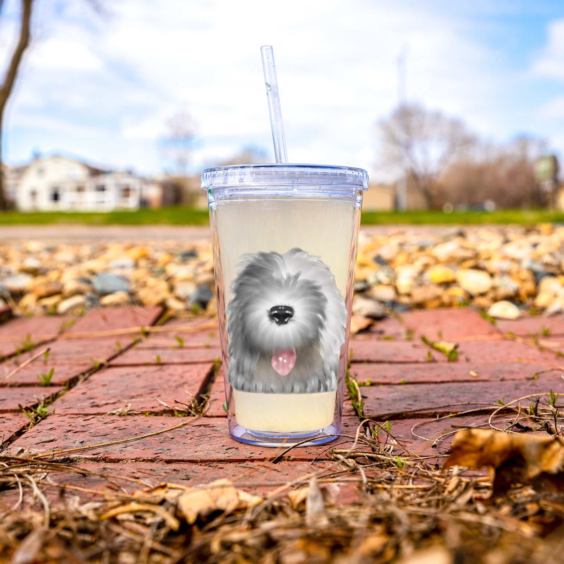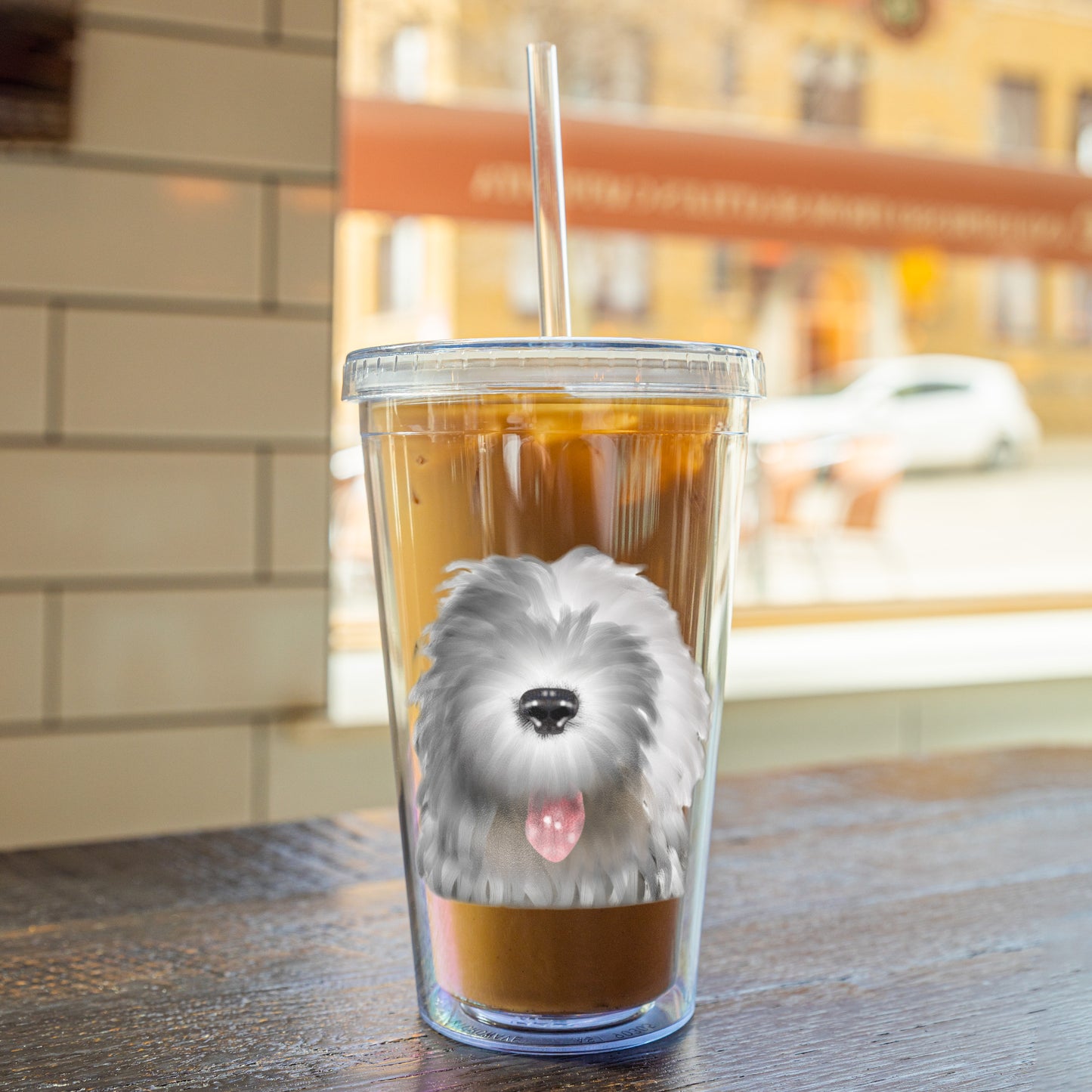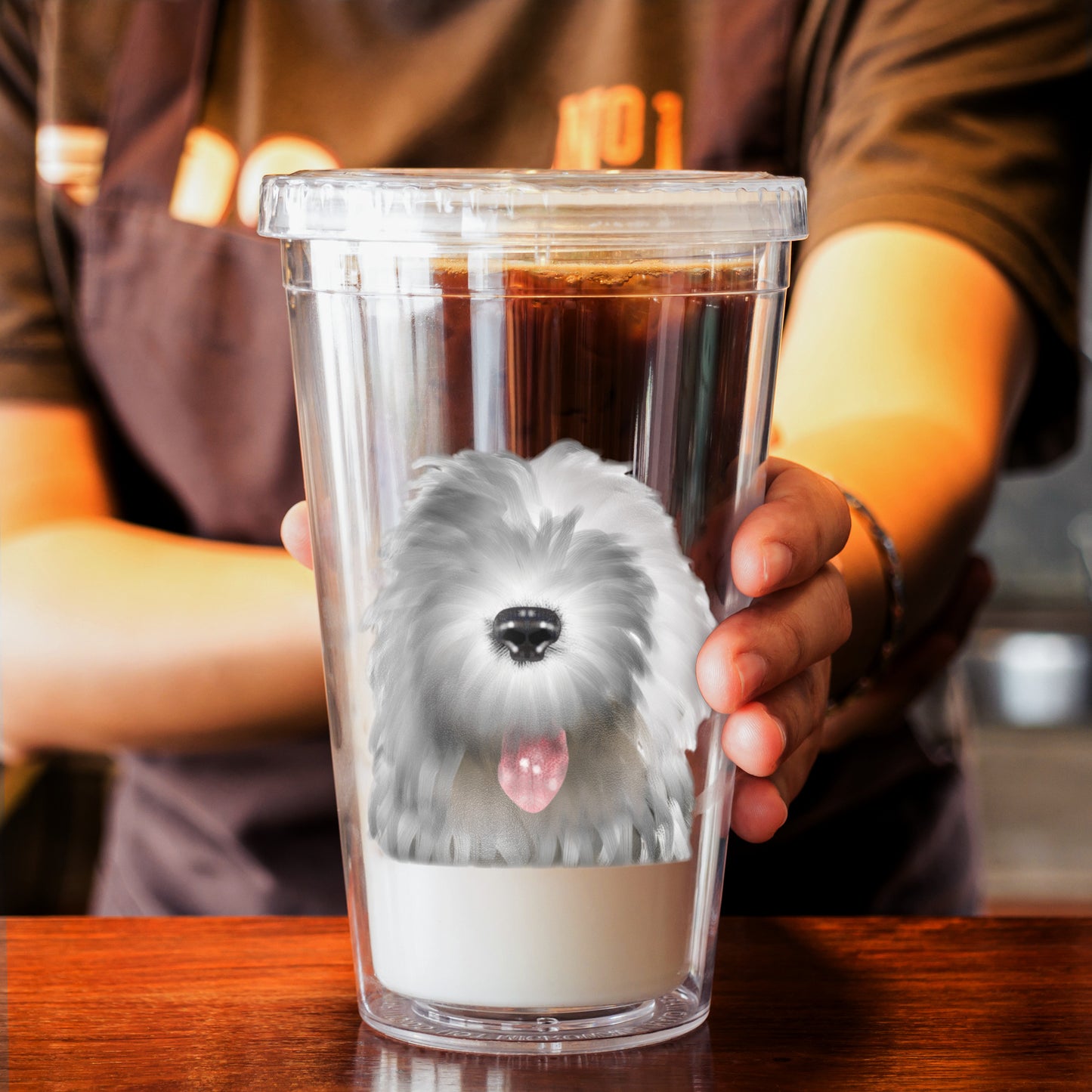 This cute Old English Sheepdog Tumble for keeping your favorite drink the perfect temp all summer long. The double wall style of this cup provides insulation for drinks both hot and cold. This 16 oz Old English Sheepdog Acrylic Tumbler is effectively insulated, keeping hot and cold drinks at the temps you want them. Perfect for storing tea, coffee, wine, juices, and water.