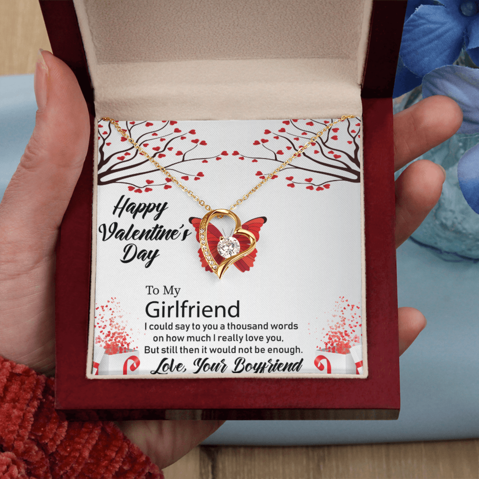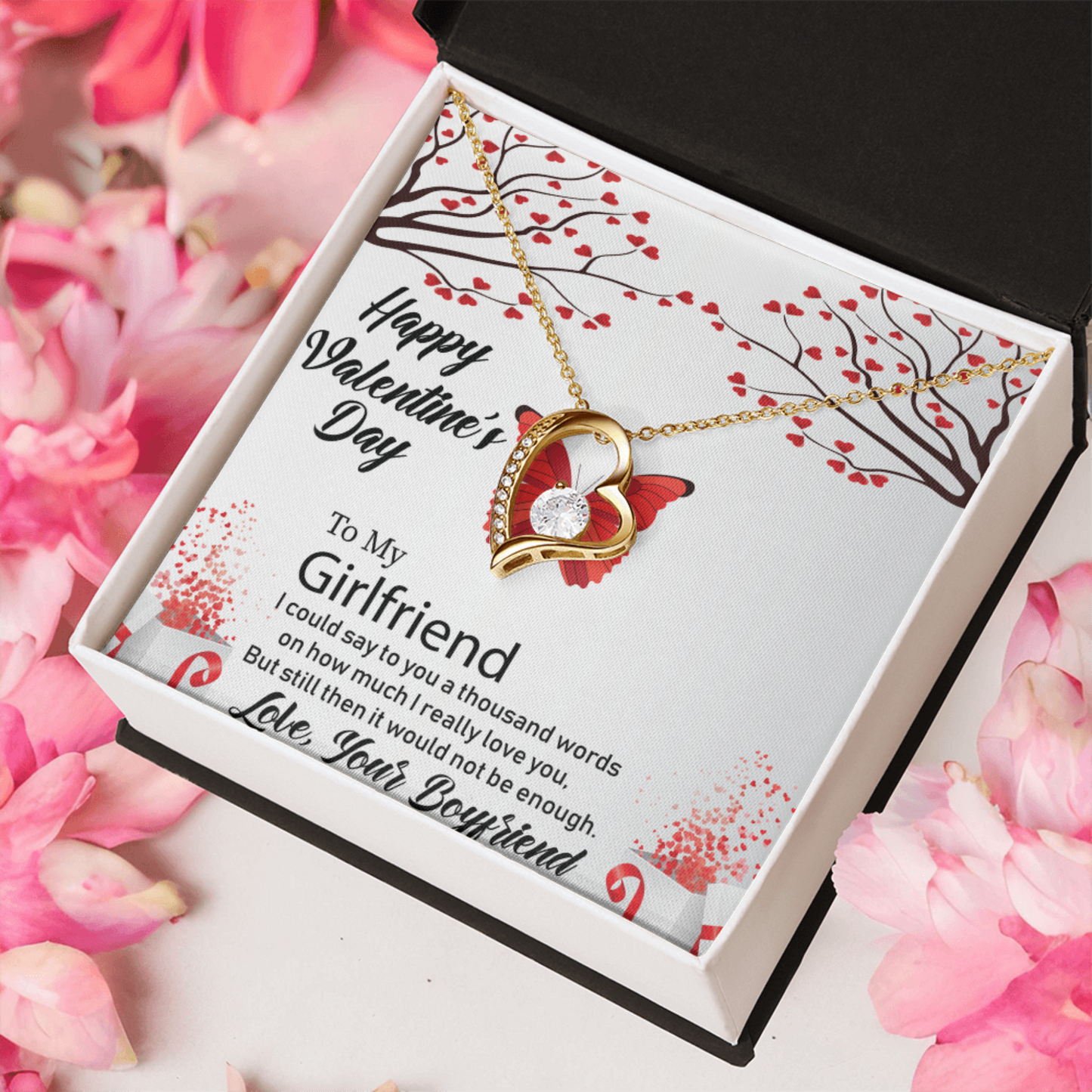 To My Girlfriend, Valentines Gift for Girlfriend, Heart Pendant Necklace, Beautiful Jewelry Gift with Heartfelt Message Card