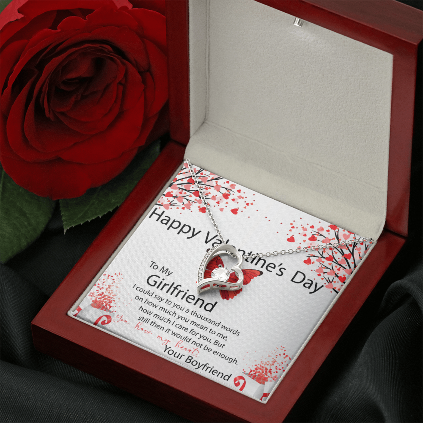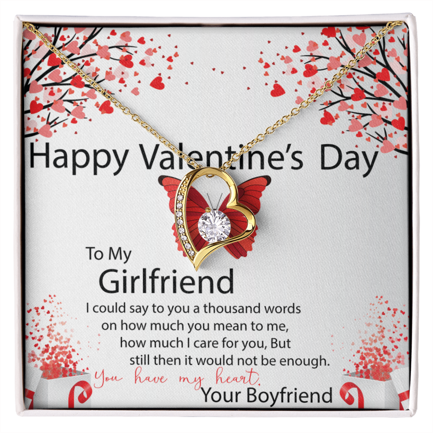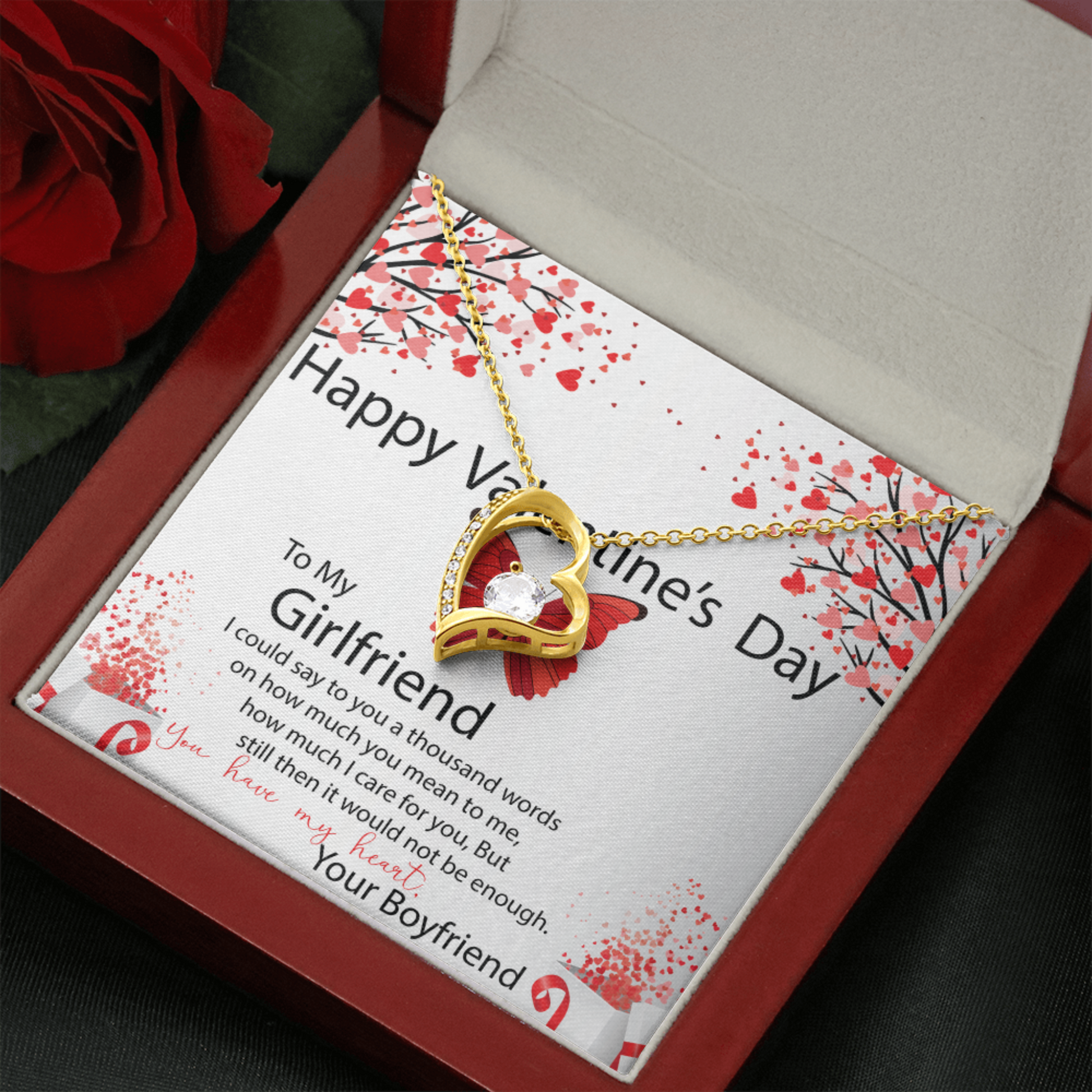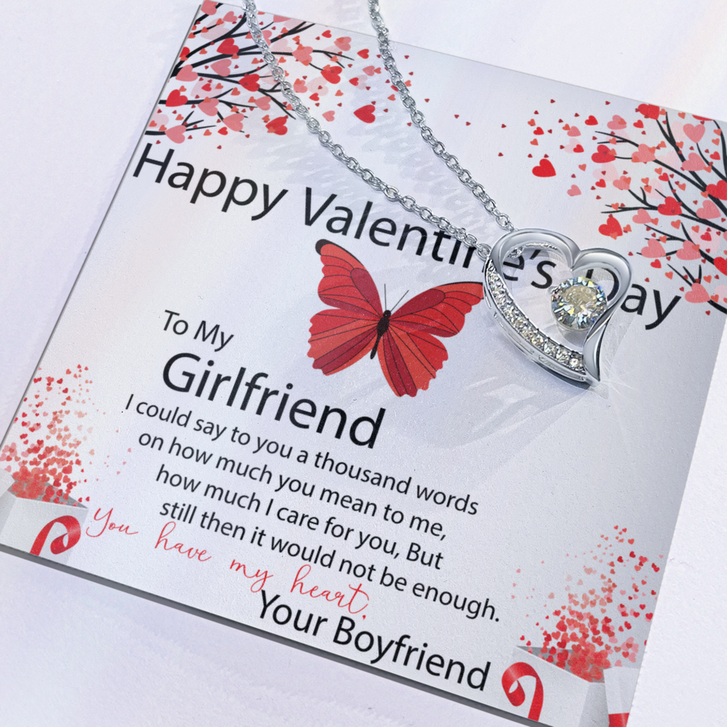 To My Girlfriend, Valentines Gift for Girlfriend, Heart Pendant Necklace, Beautiful Jewelry Gift with Heartfelt Message Card