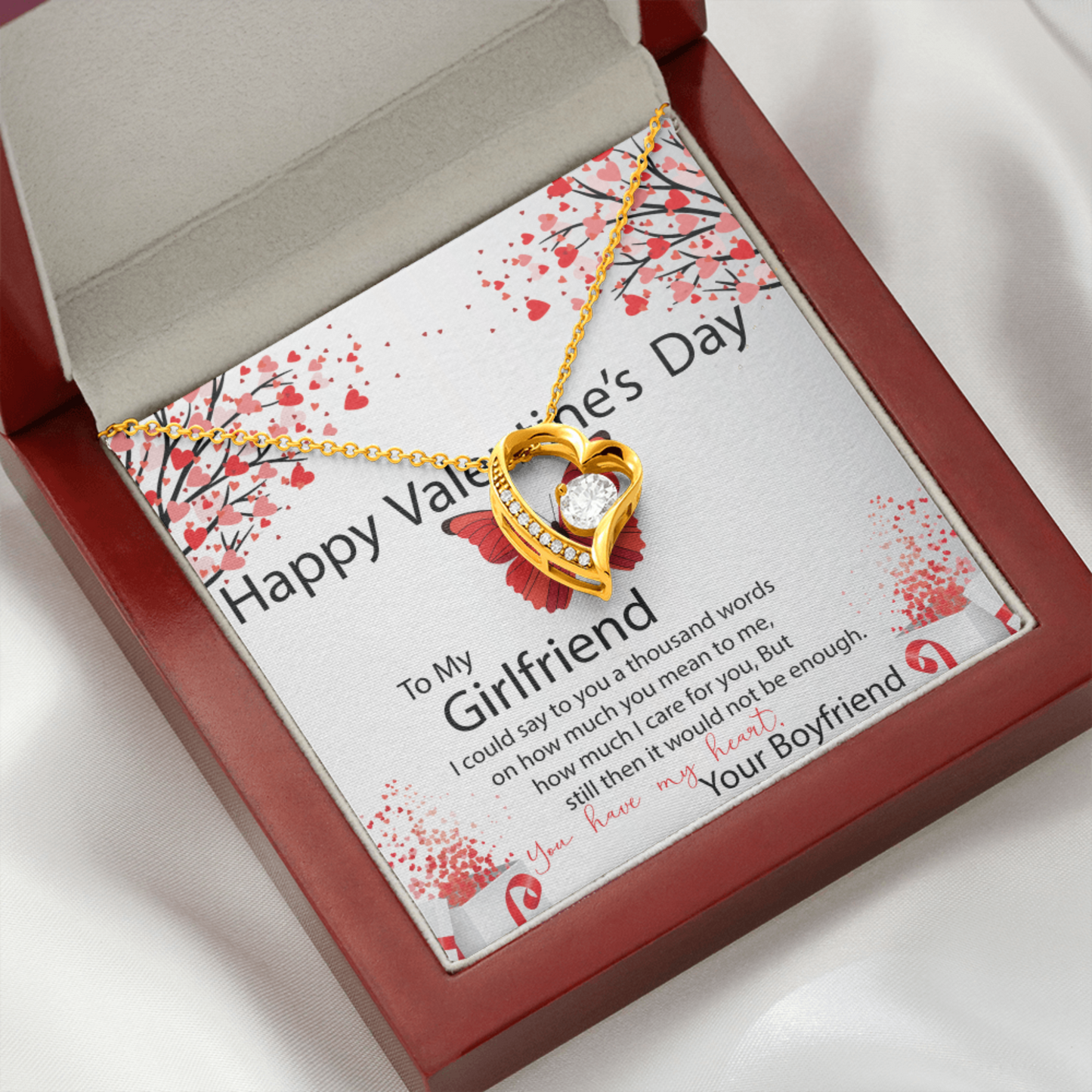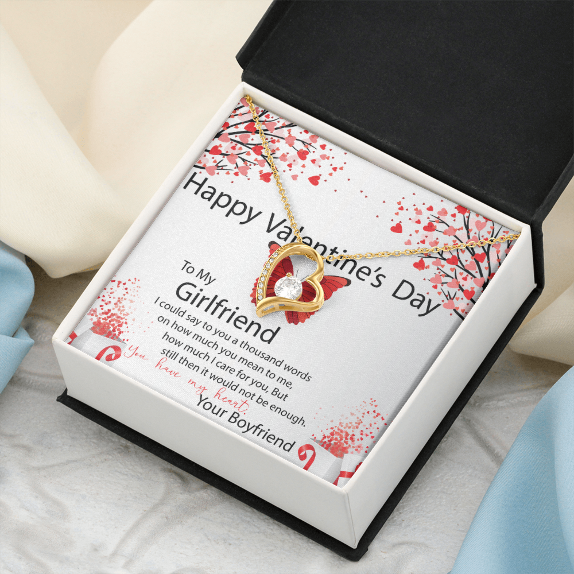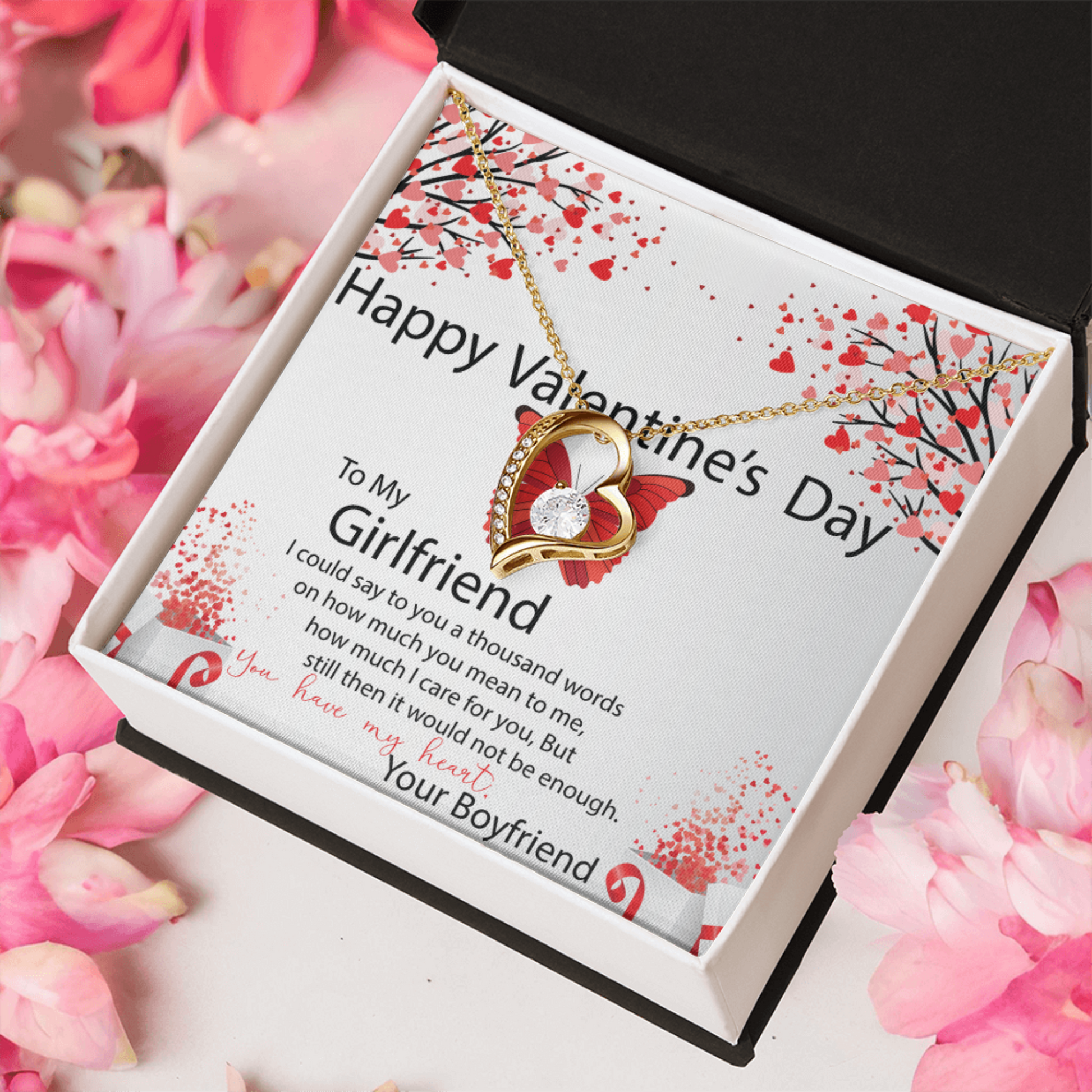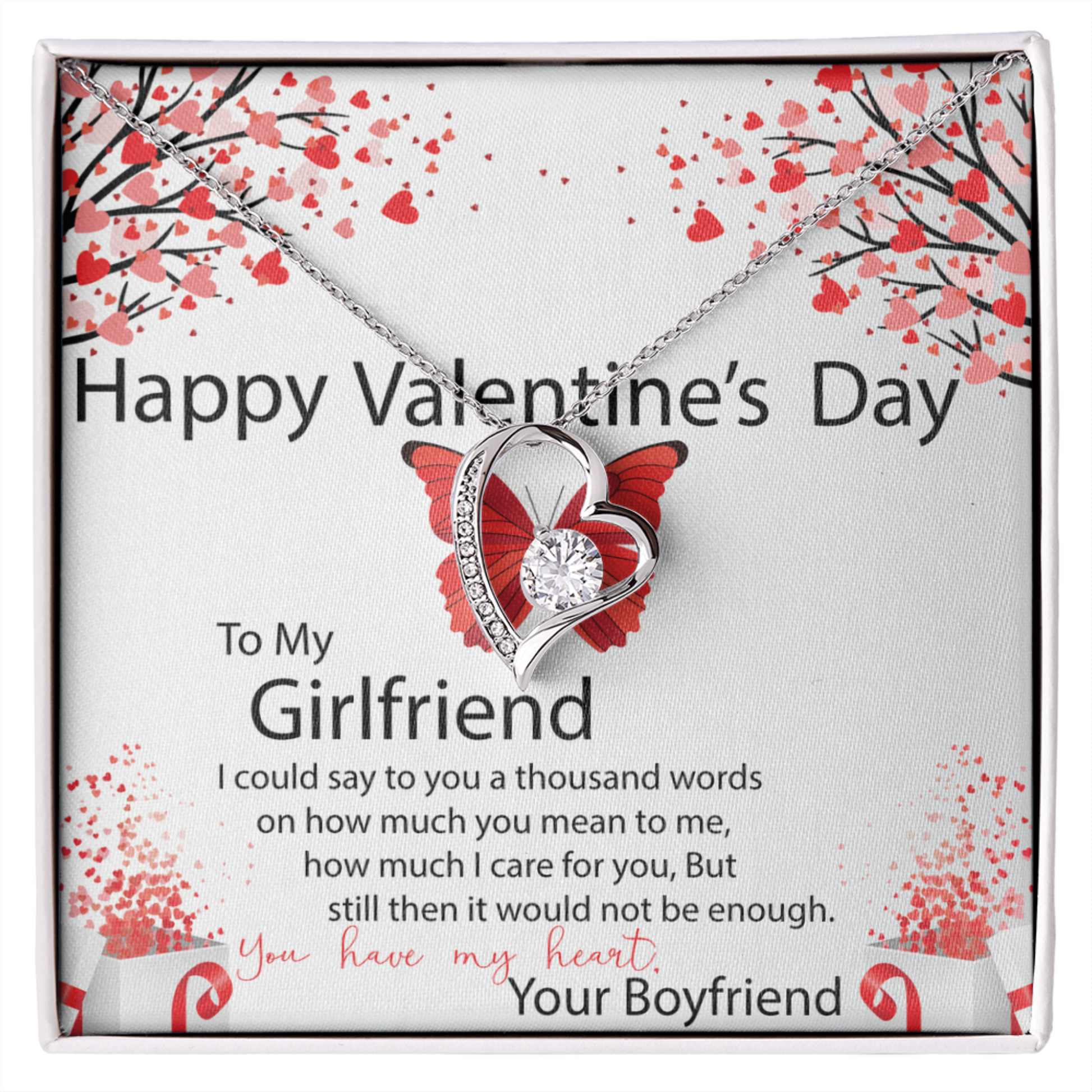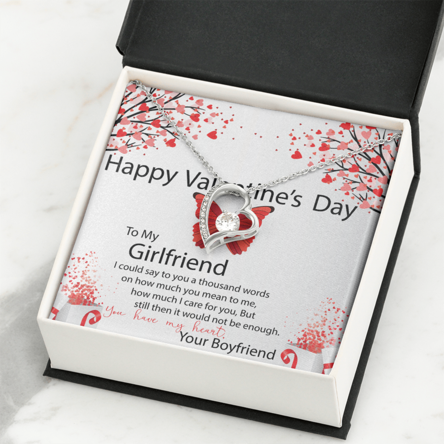 To My Girlfriend, Valentines Gift for Girlfriend, Heart Pendant Necklace, Beautiful Jewelry Gift with Heartfelt Message Card