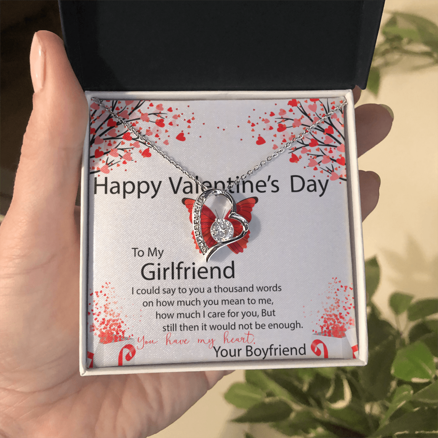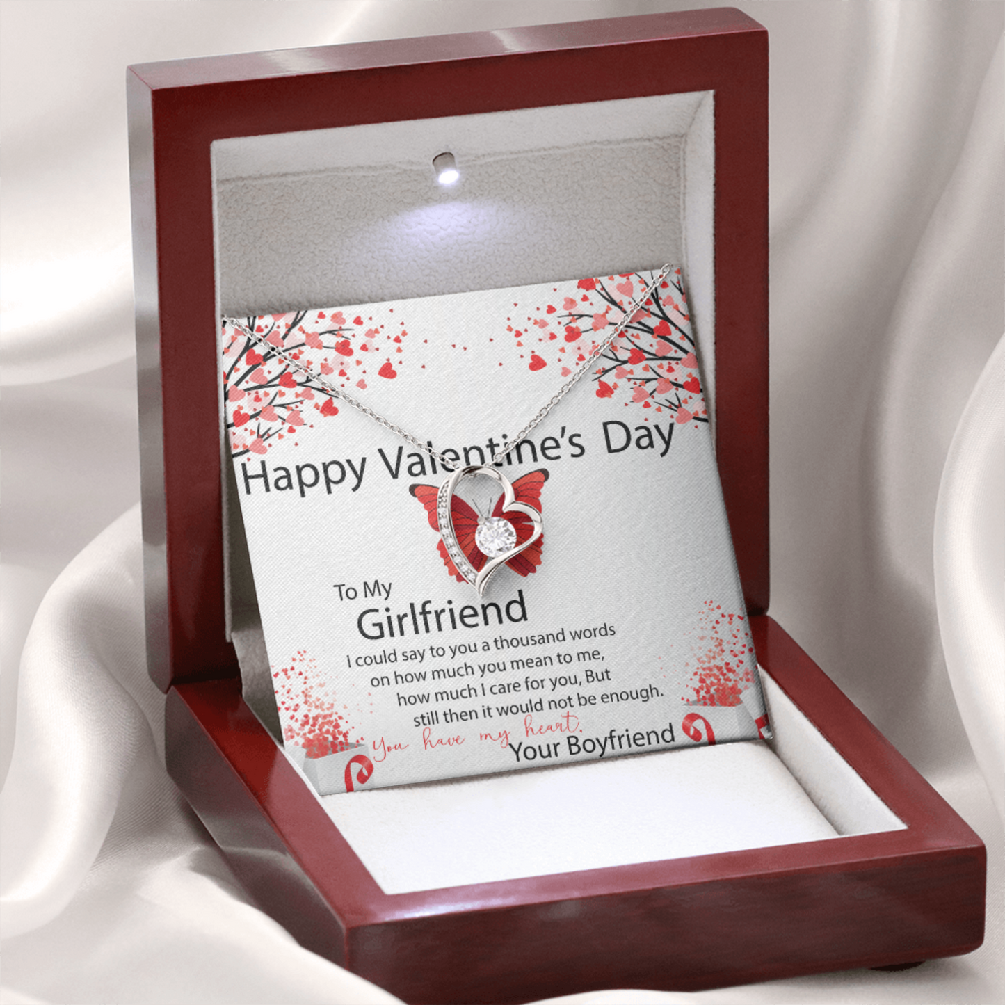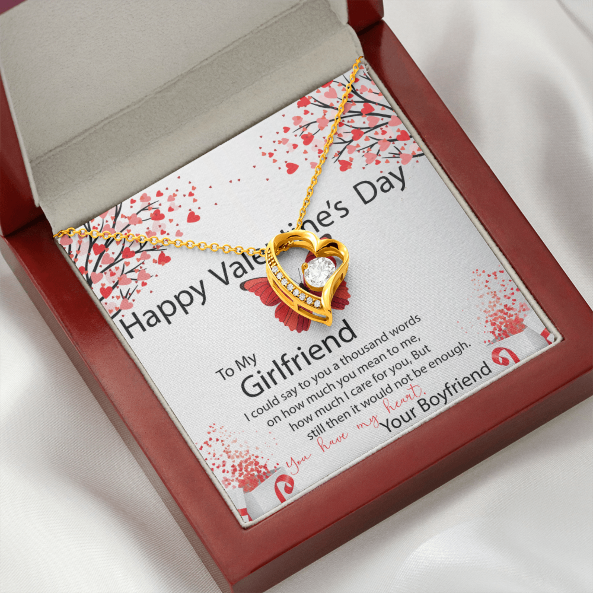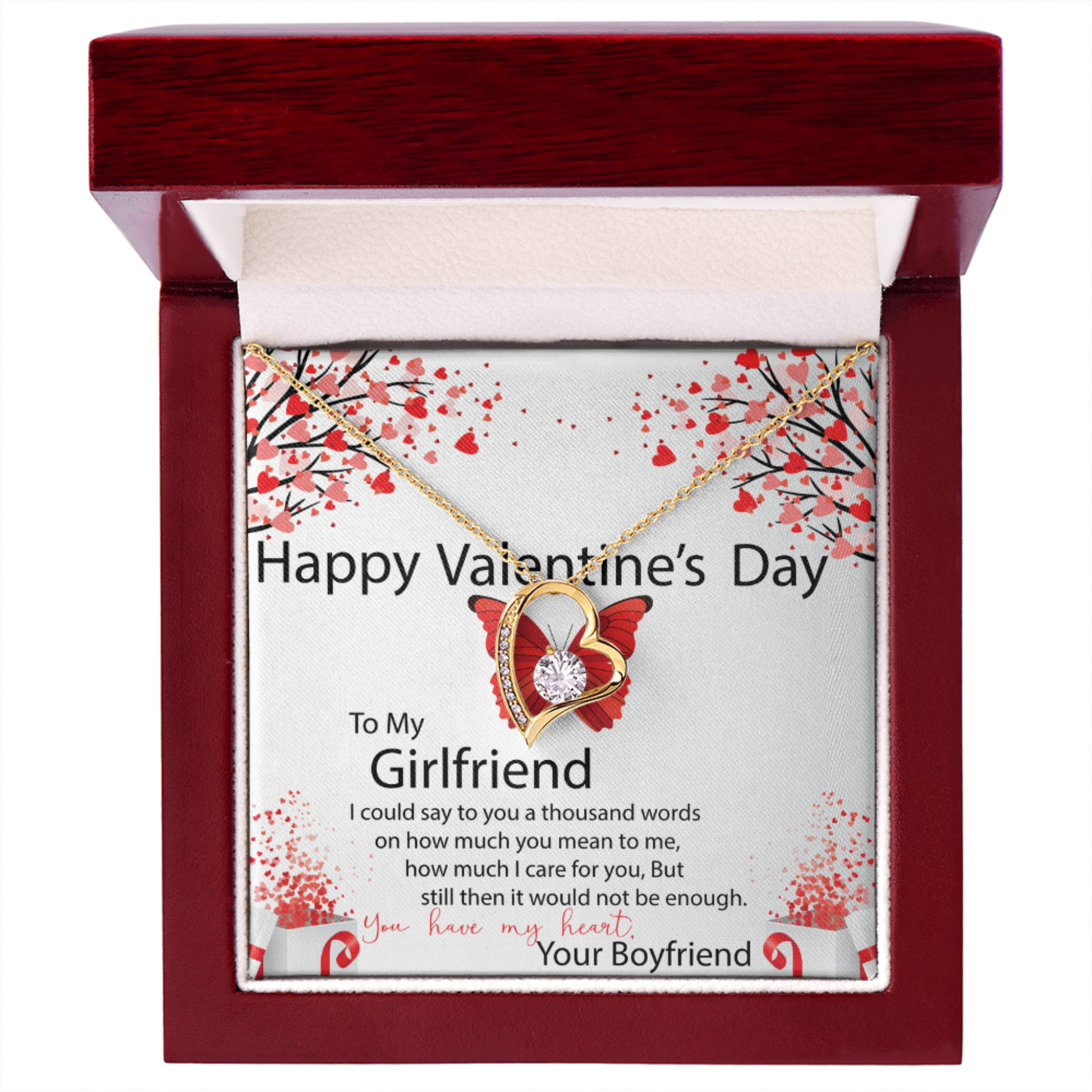 To My Girlfriend, You Have My Heart, Valentines Day Gift For Girlfriend, Heart Pendant Necklace, Heart Necklace with Message Card