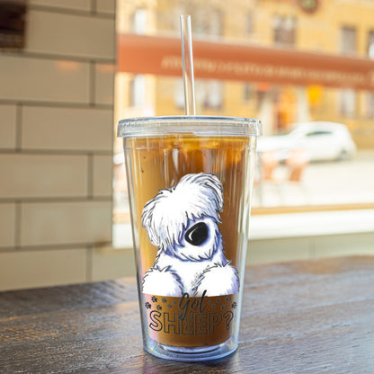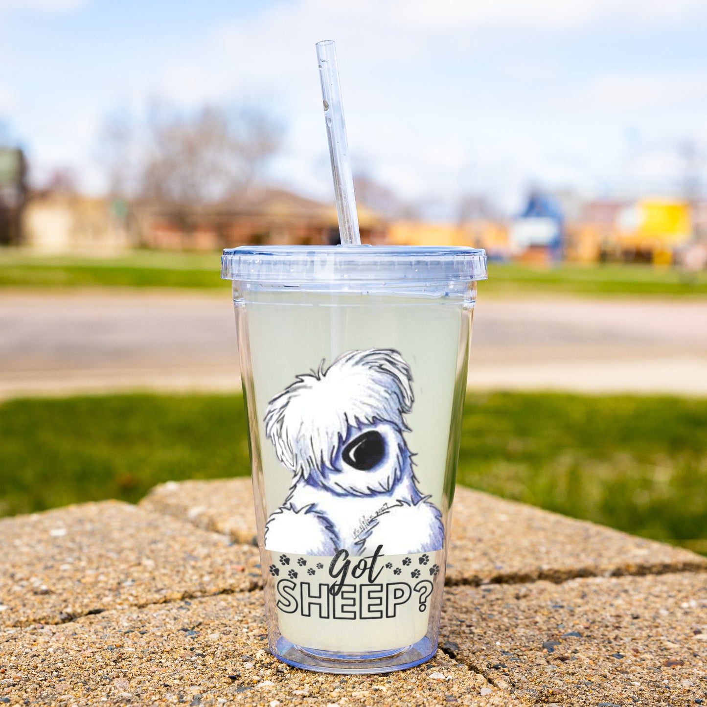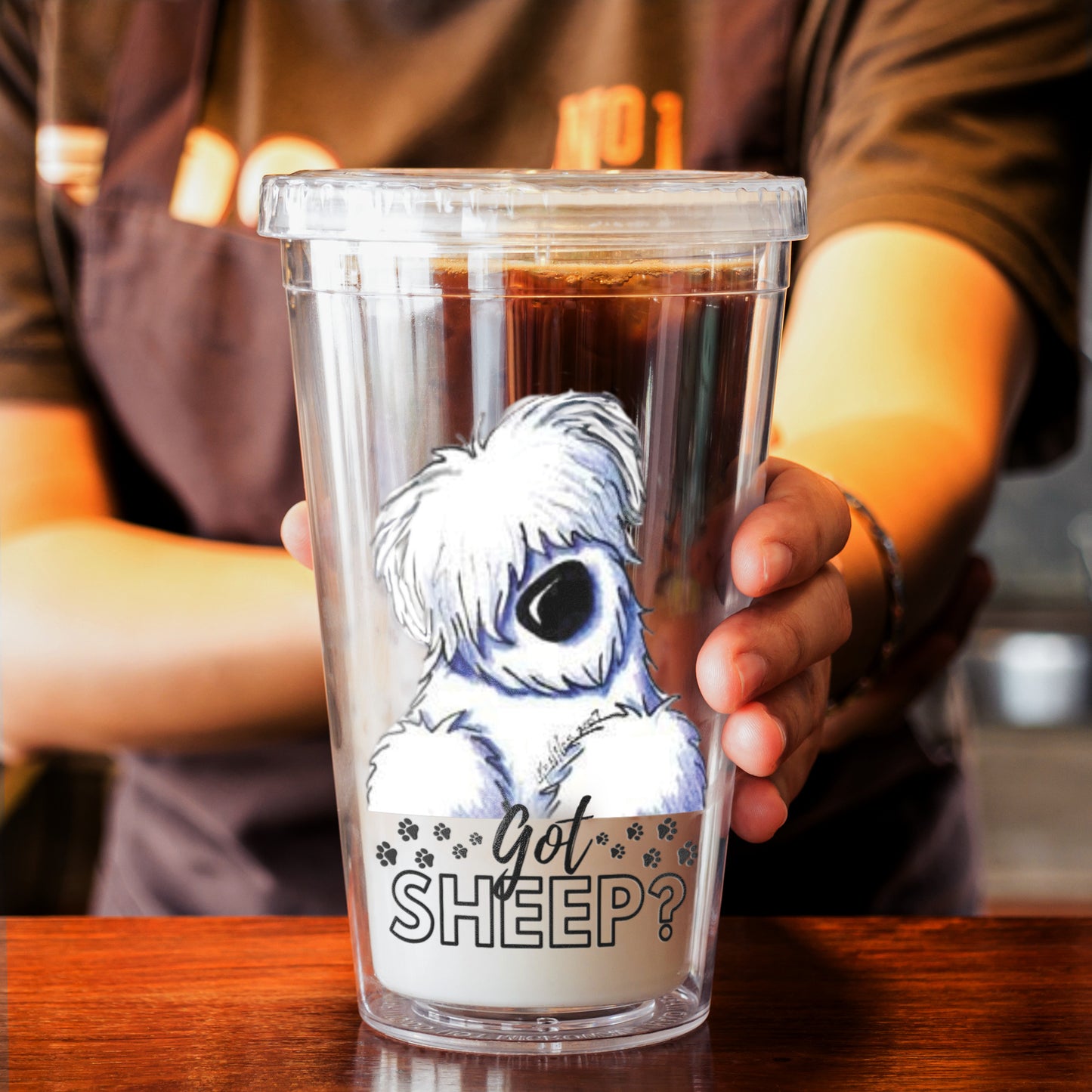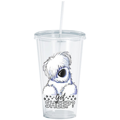 Old English Sheepdog Insulated Tumbler, Got Sheep? Sheepie 16oz Acrylic Travel Tumbler with Lid and Straw, Sheepie with White Ears