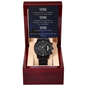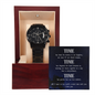 Looking for a unique and thoughtful gift for your love? This Black Chronograph Watch Gift with this heartfelt Message Card is perfect Valentine's gift for him. Give him the gift of luxury with this handsome and stunning timepiece. And this Black Chronograph Watch with "Time" message card is the perfect blend of classic design and modern styling, making it an essential accessory for his remarkable style. Featuring a three-dial face, calendar function, and luxury pointer in a water-resistant and scratch-proof vessel.