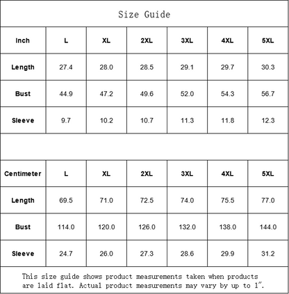 | Centimeter | L | XL | 2XL | 3XL | 4XL | 5XL |
